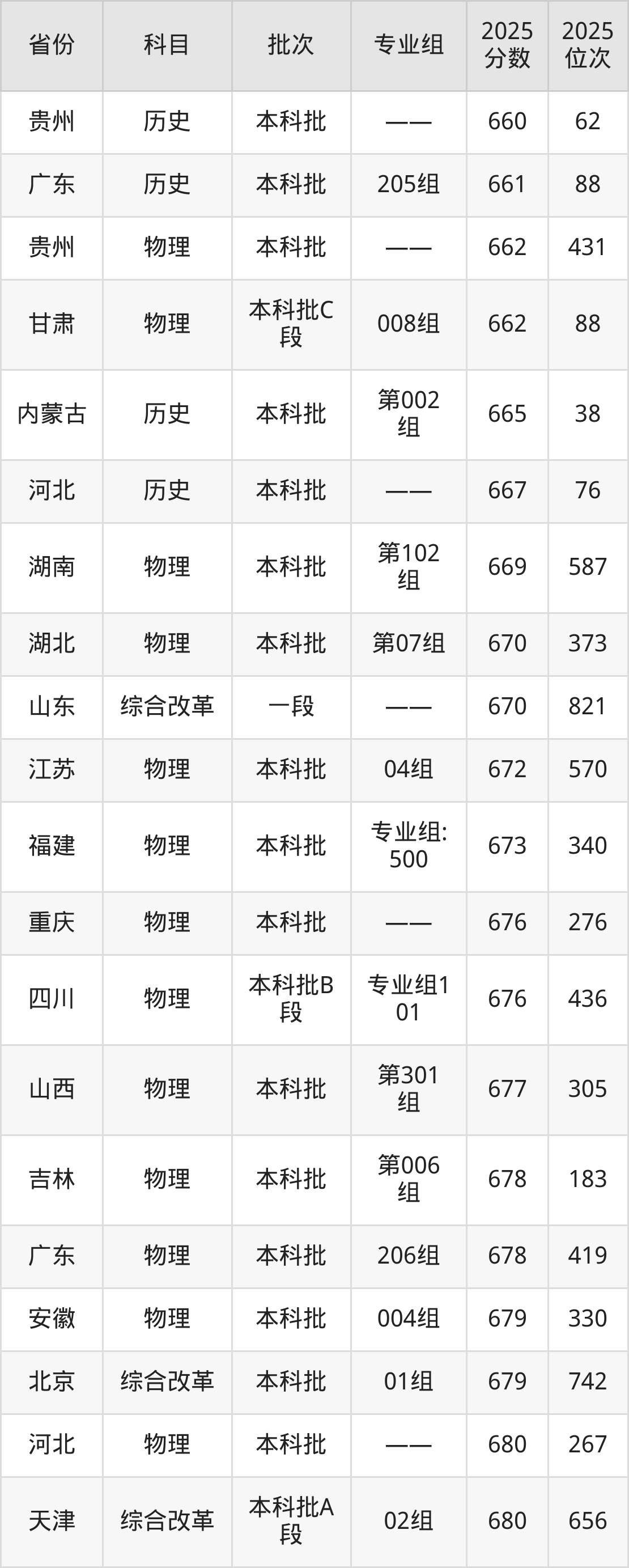 最高录取分数线是667分,对应位次是76名,招生地区为河北。