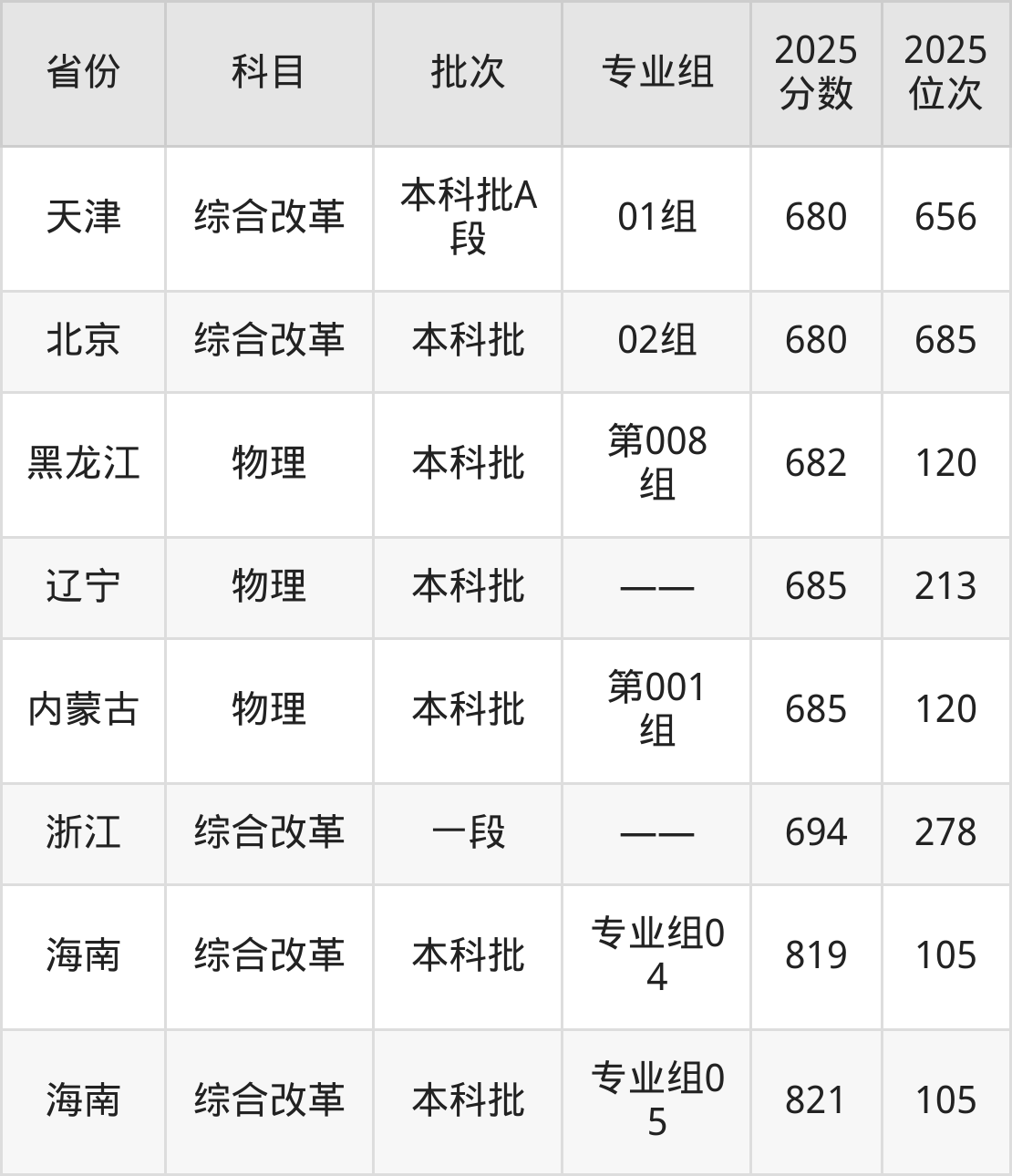 最高录取分数线是685分,对应位次是213名,招生地区为辽宁。
