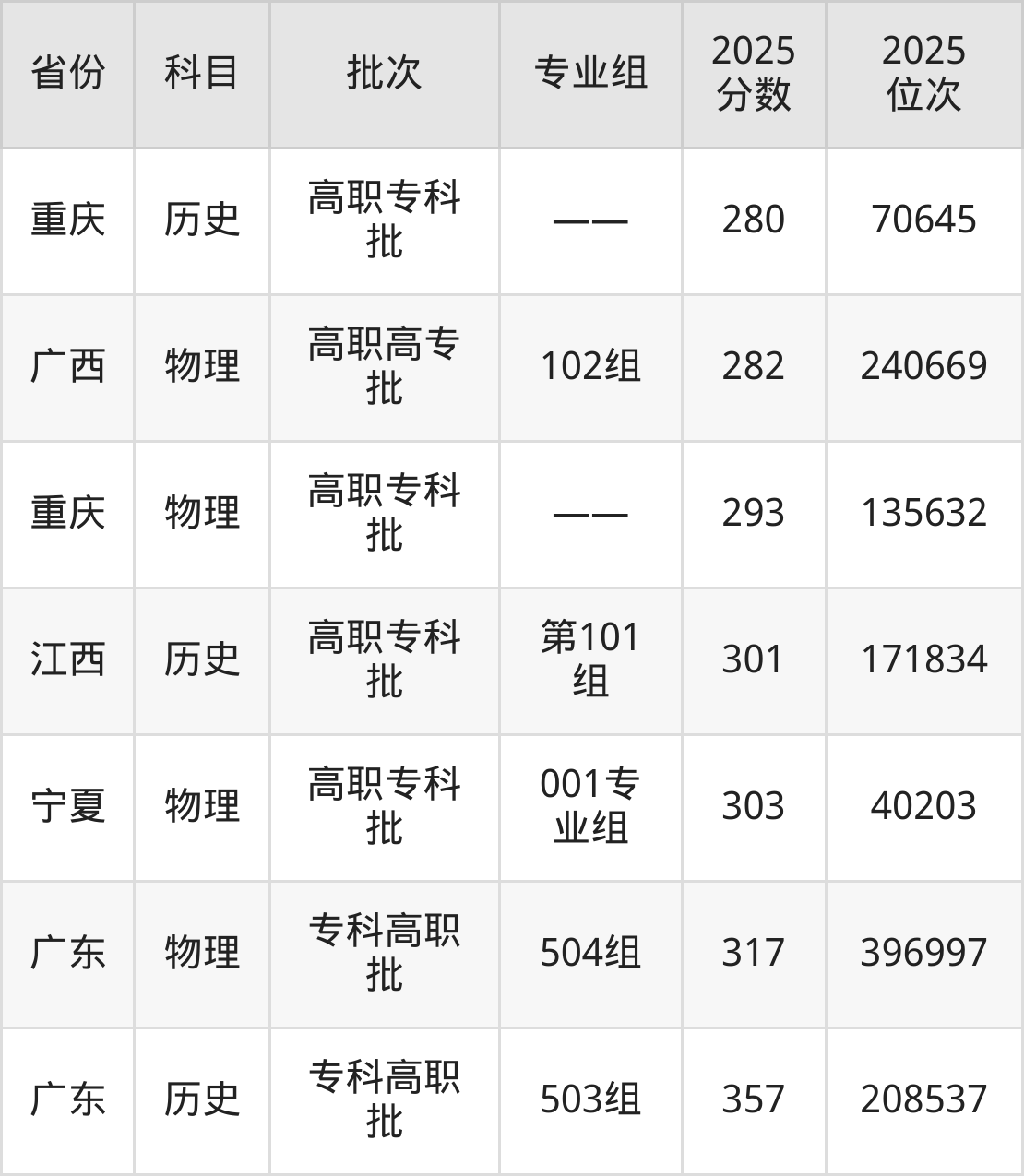 2025年四川托普信息技术职业学院在各省普通批录取分数线一览表:
