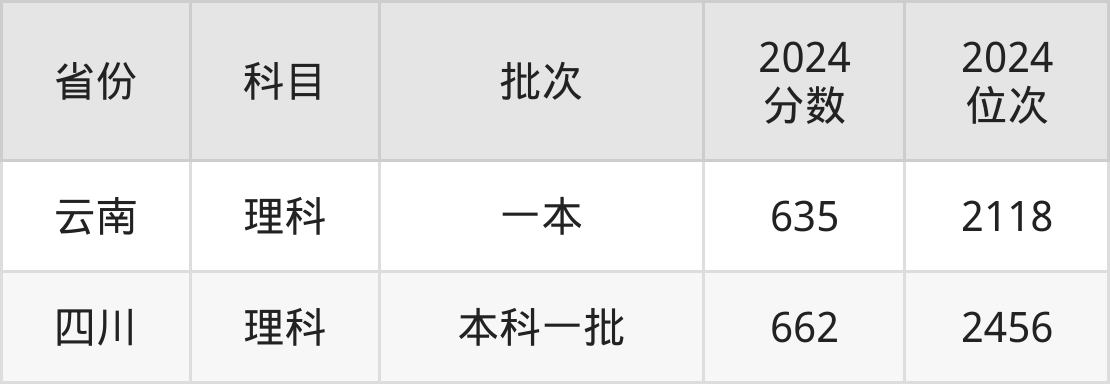 最低录取分数线是635分,对应位次是2118名,招生地区为云南;