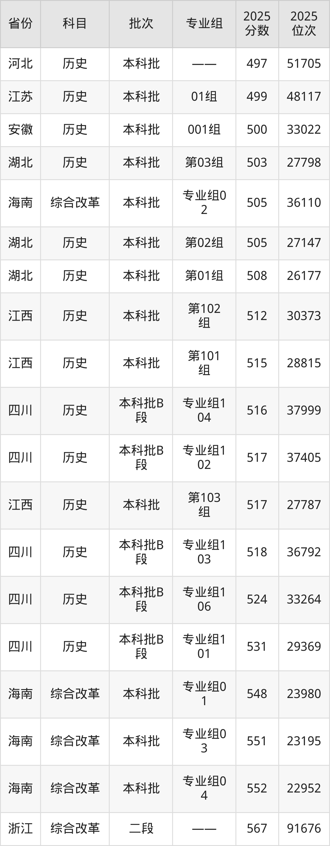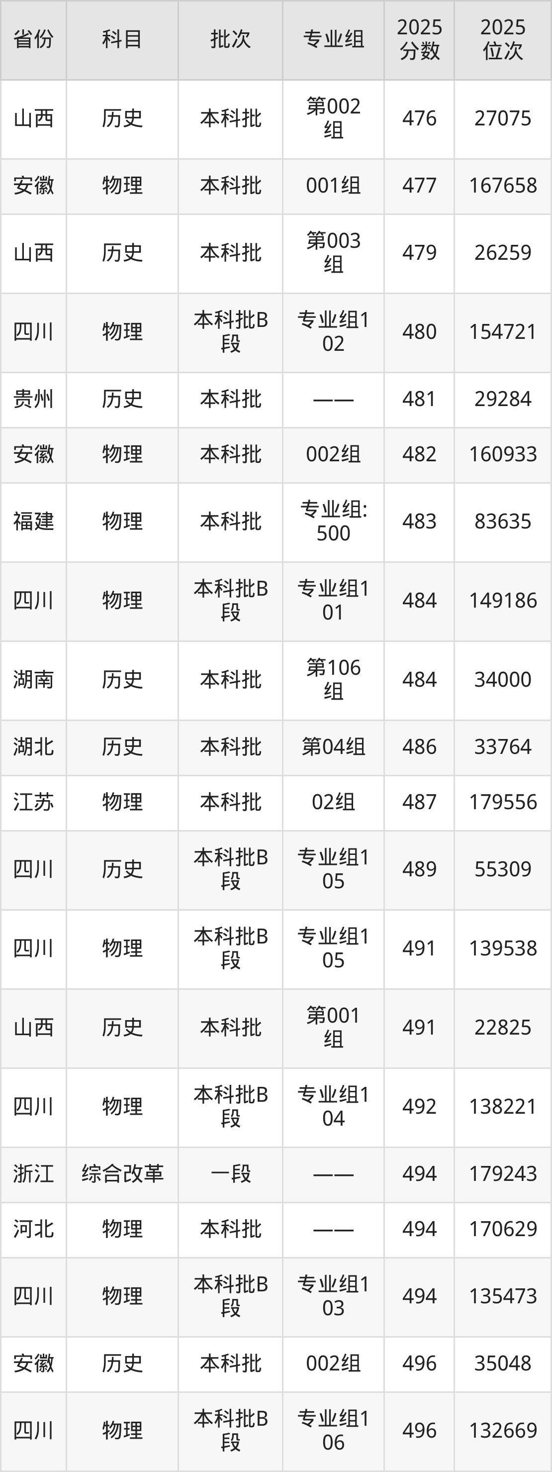 最高录取分数线是496分,对应位次是132669名,招生地区为四川。