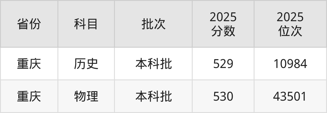 最低录取分数线是529分,对应位次是10984名,招生地区为重庆。