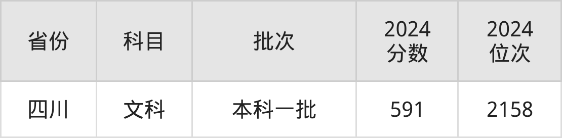 最低录取分数线是591分,对应位次是2158名,招生地区为四川。