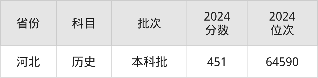 最低录取分数线是451分,对应位次是64590名,招生地区为河北。