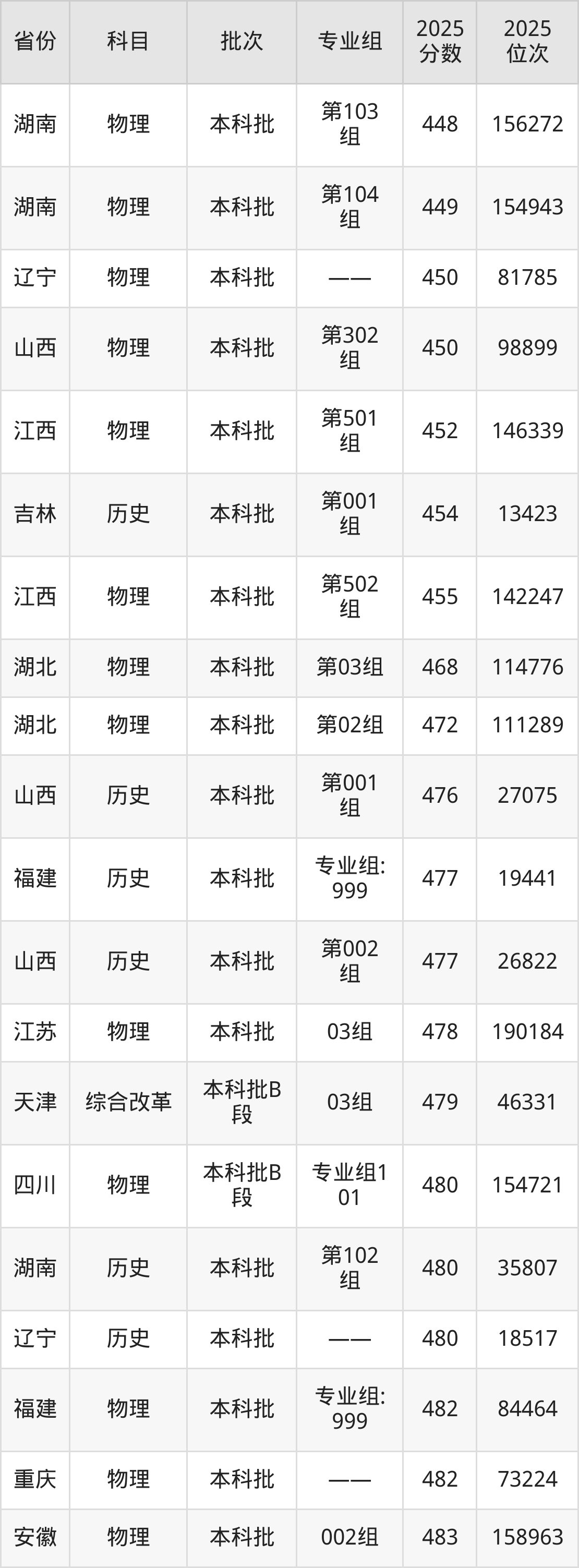 2025年江西师范大学科学技术学院在各省物理类的录取分数线位于385分-495分之间。