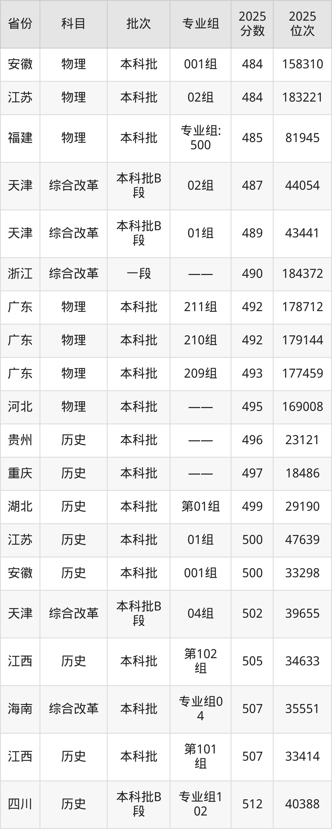 最高录取分数线是495分,对应位次是169008名,招生地区为河北。