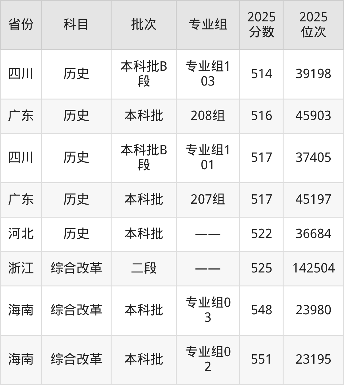 最高录取分数线是551分,对应位次是23195名,招生地区为海南。