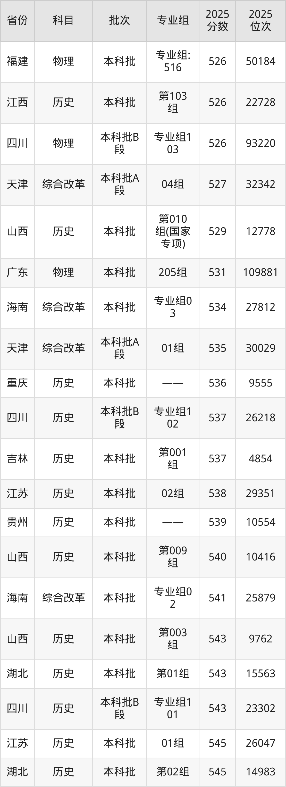 最低录取分数线是379分,对应位次是25536名,招生地区为新疆;