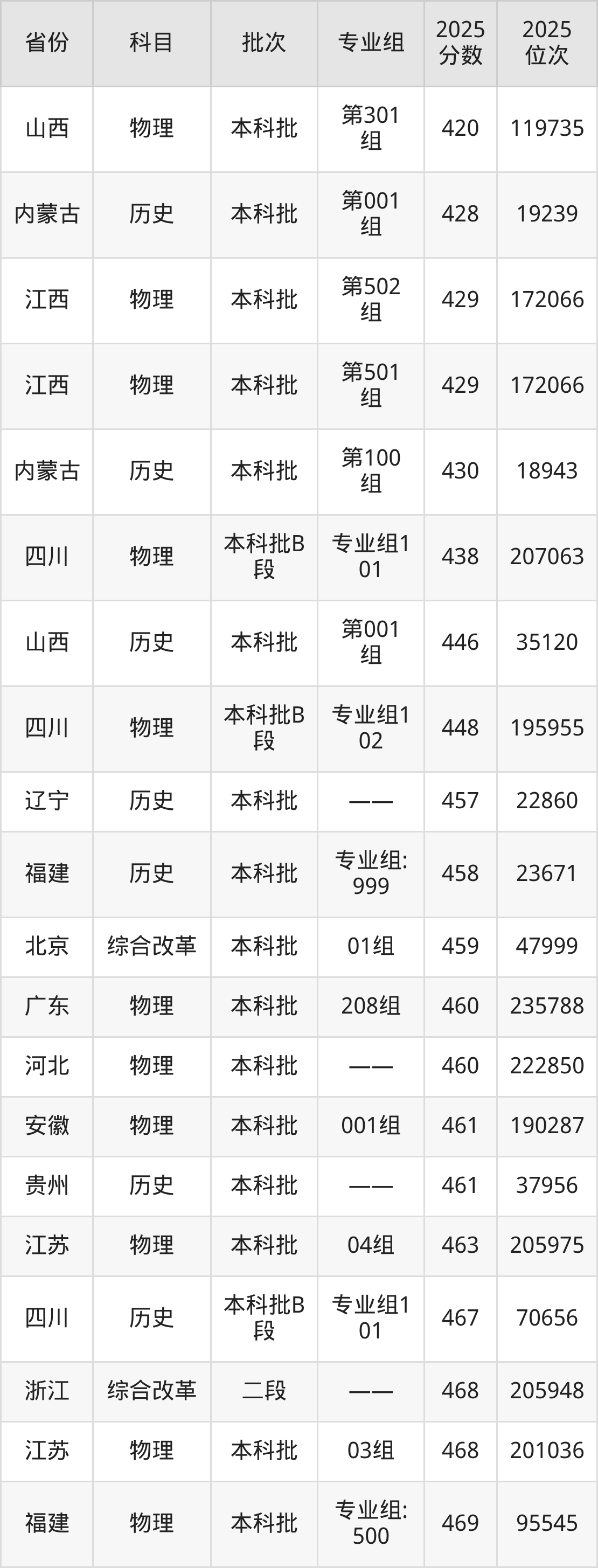 最低录取分数线是459分,对应位次是47999名,招生地区为北京;