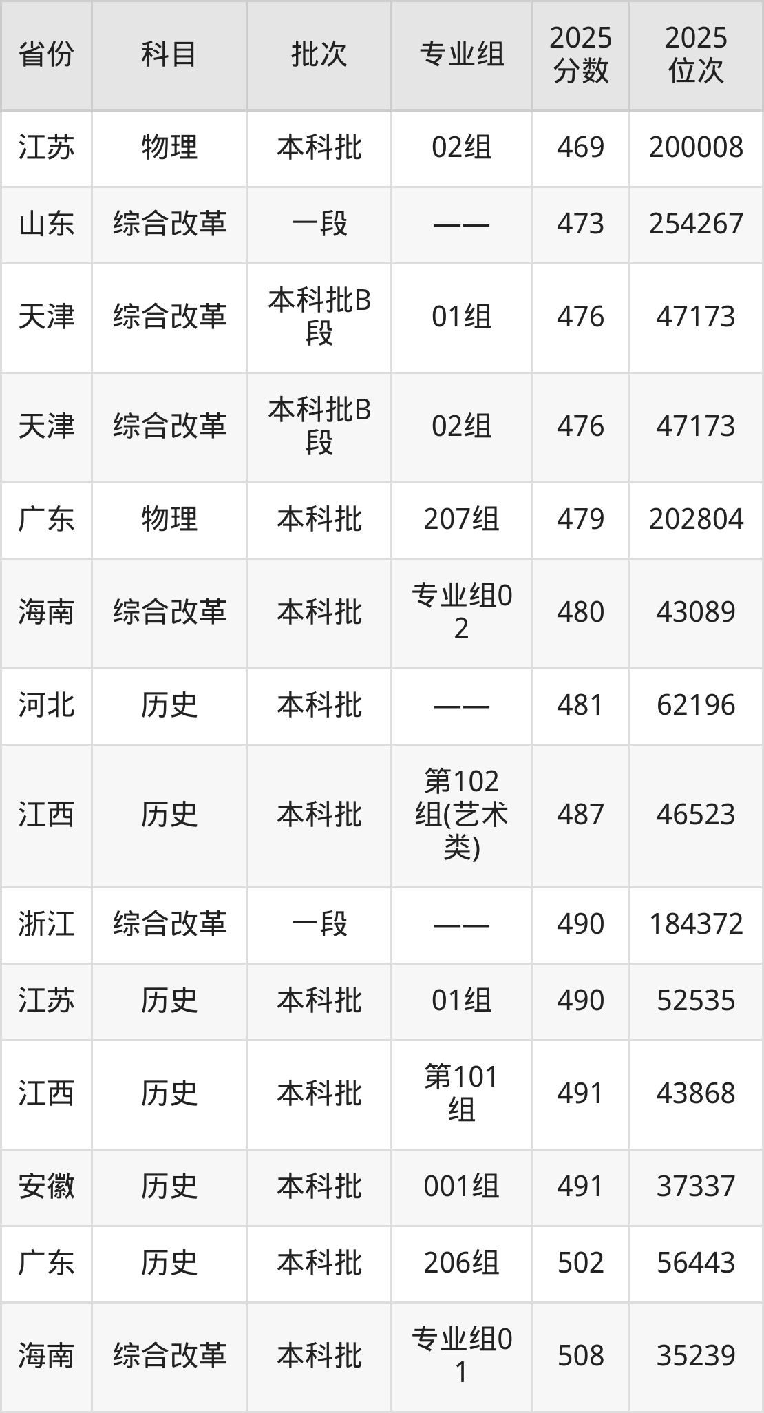 最高录取分数线是479分,对应位次是202804名,招生地区为广东。
