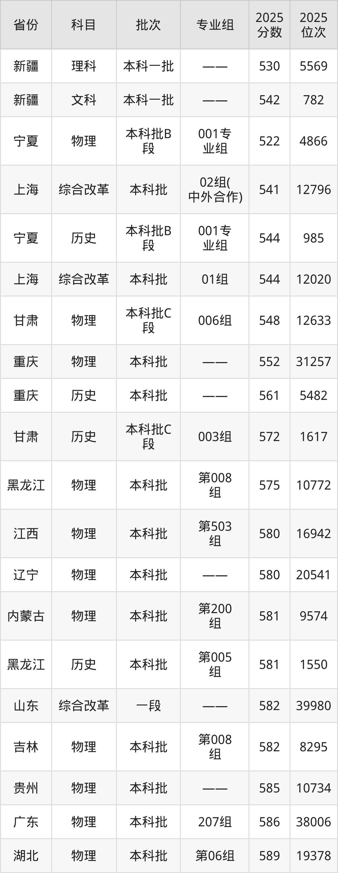 最低录取分数线是542分,对应位次是782名,招生地区为新疆;