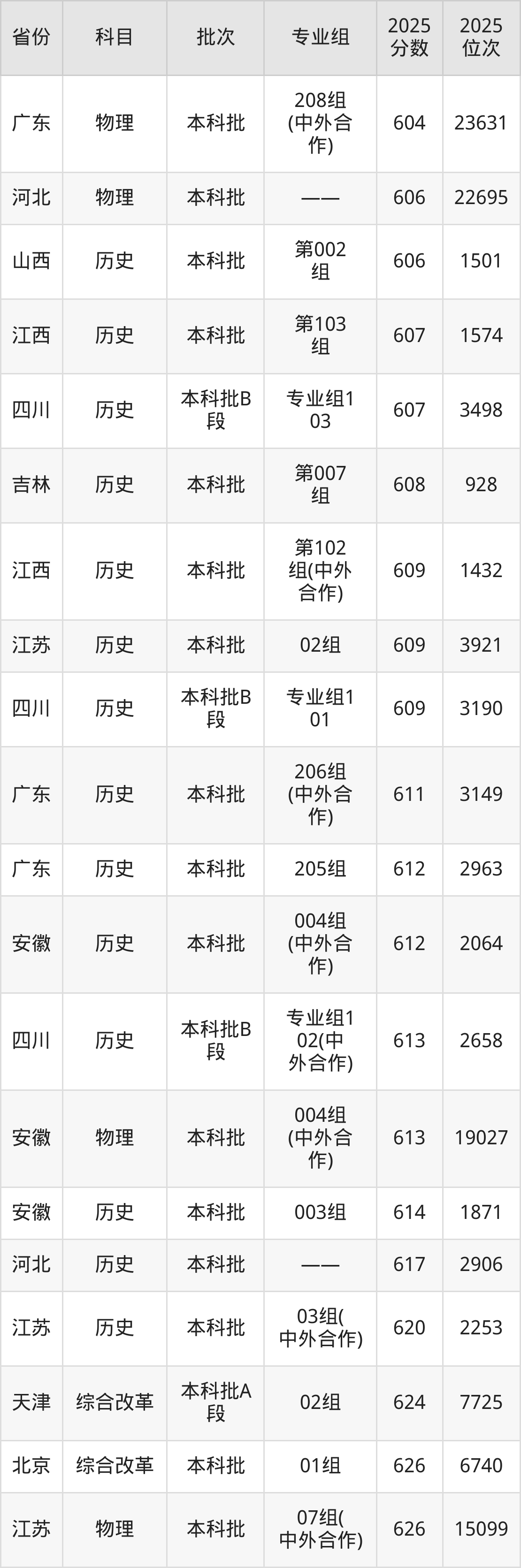 最高录取分数线是626分,对应位次是15099名,招生地区为江苏。