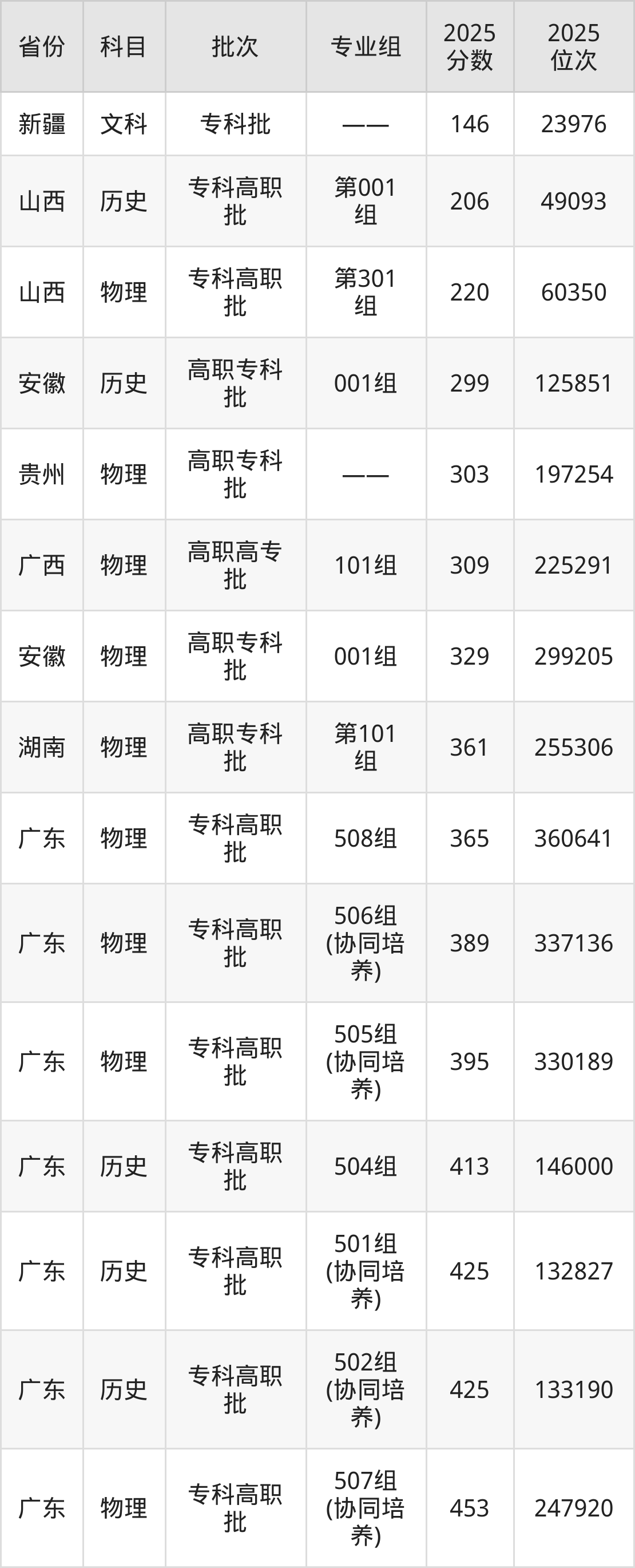 2025年揭阳职业技术学院在普通批次招生,录取分数线是146分-453分。