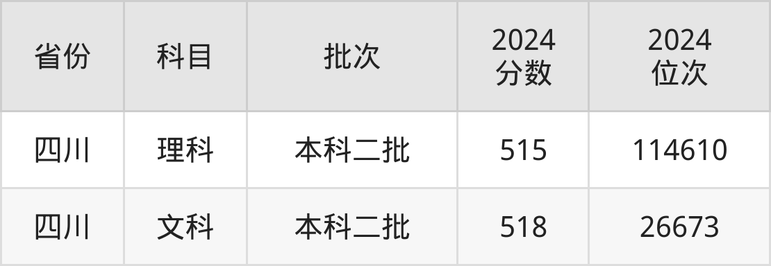 最低录取分数线是518分,对应位次是26673名,招生地区为四川。