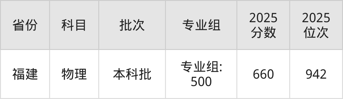 最低录取分数线是660分,对应位次是942名,招生地区为福建。