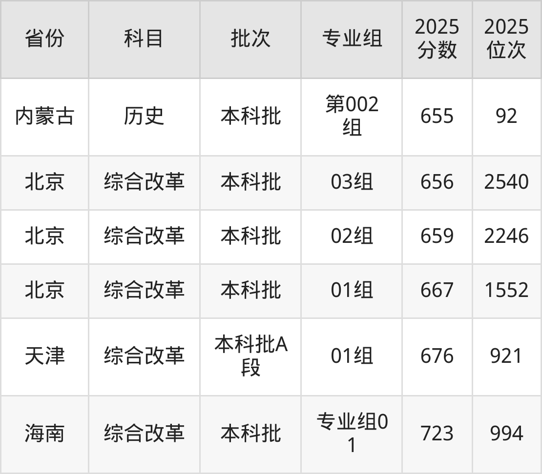 最高录取分数线是655分,对应位次是92名,招生地区为内蒙古。