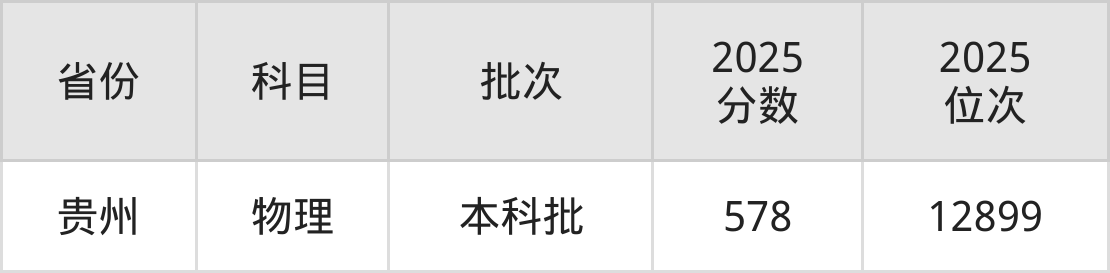 最低录取分数线是578分,对应位次是12899名,招生地区为贵州。
