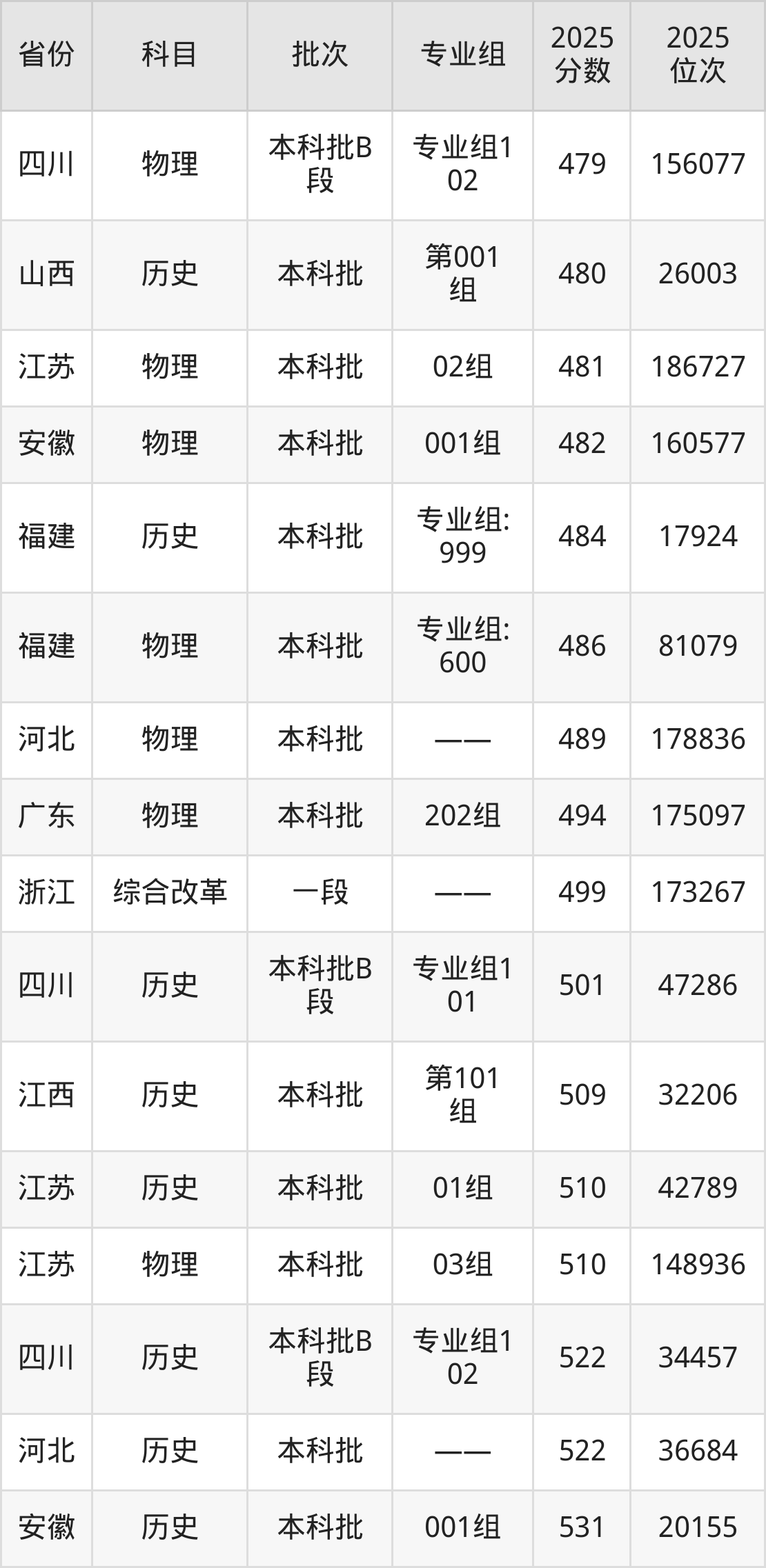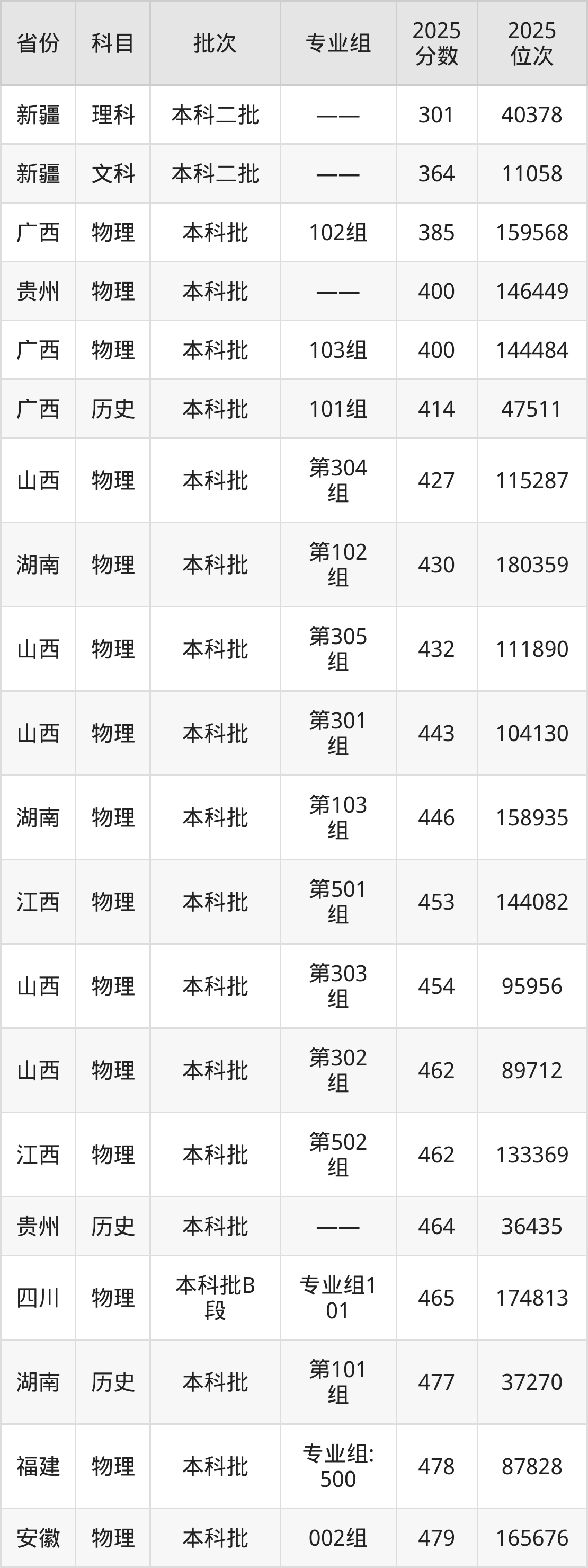 最低录取分数线是301分,对应位次是40378名,招生地区为新疆;