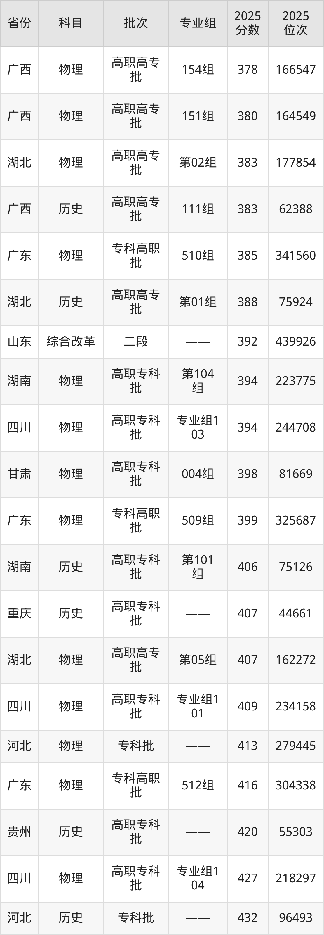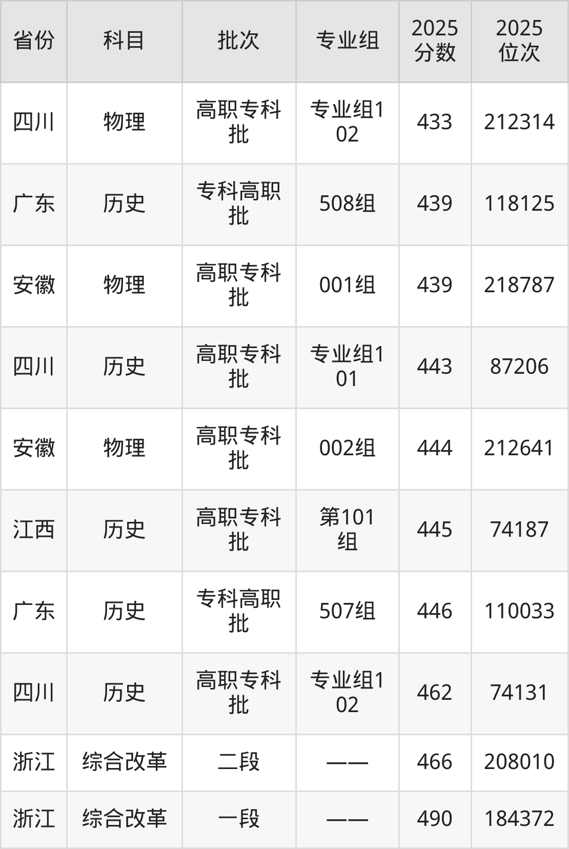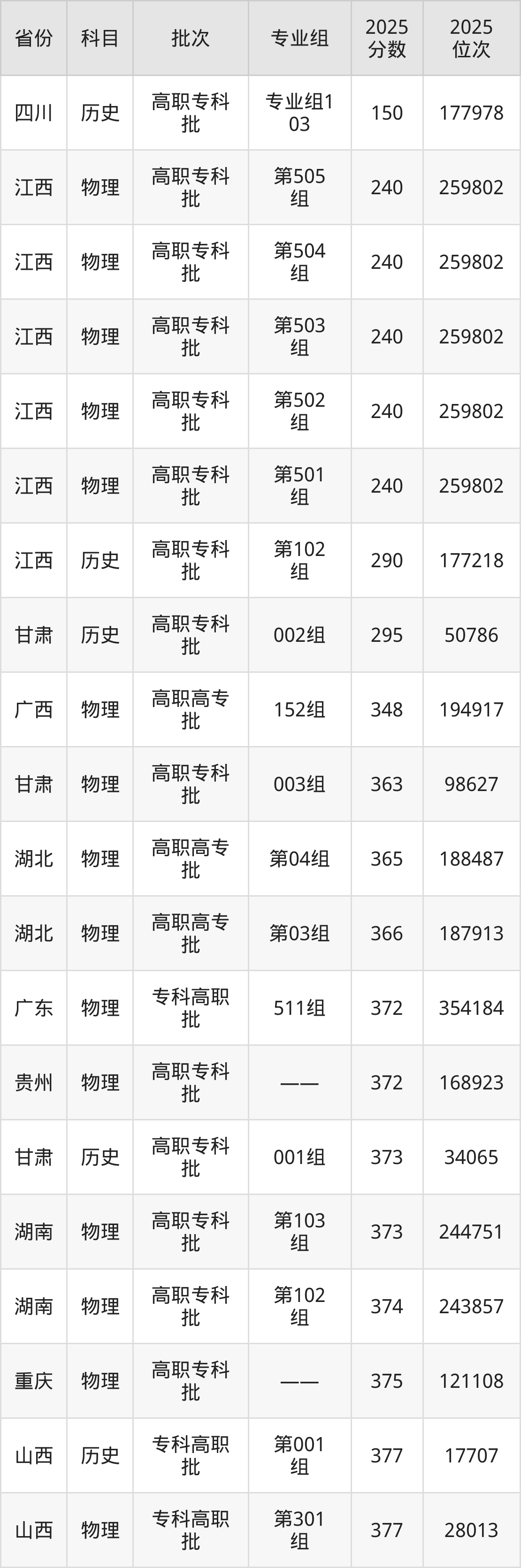 2025年赣南卫生健康职业学院在各省普通批录取分数线一览表: