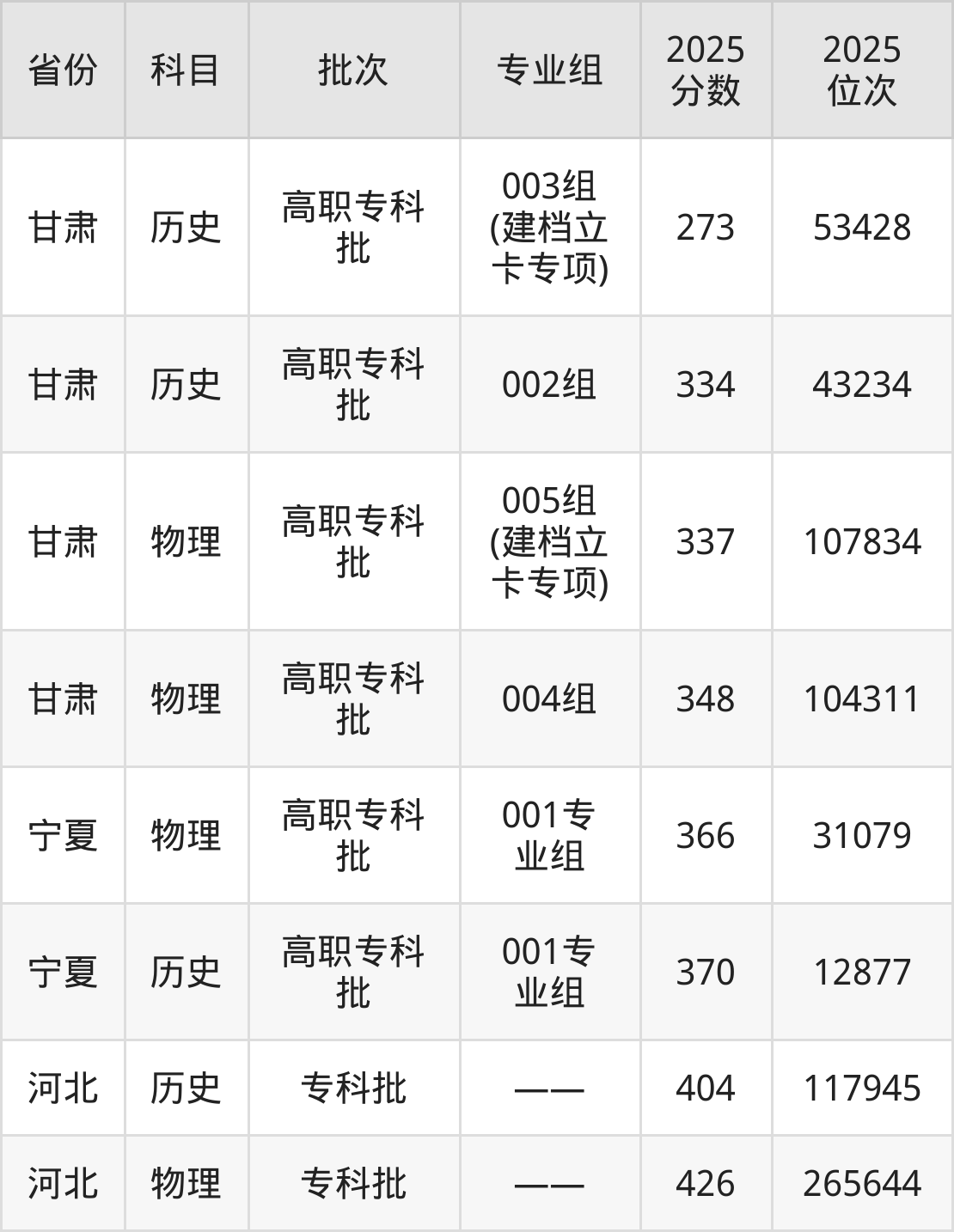 2025年兰州航空职业技术学院在各省历史类的录取分数线位于273分-404分之间。