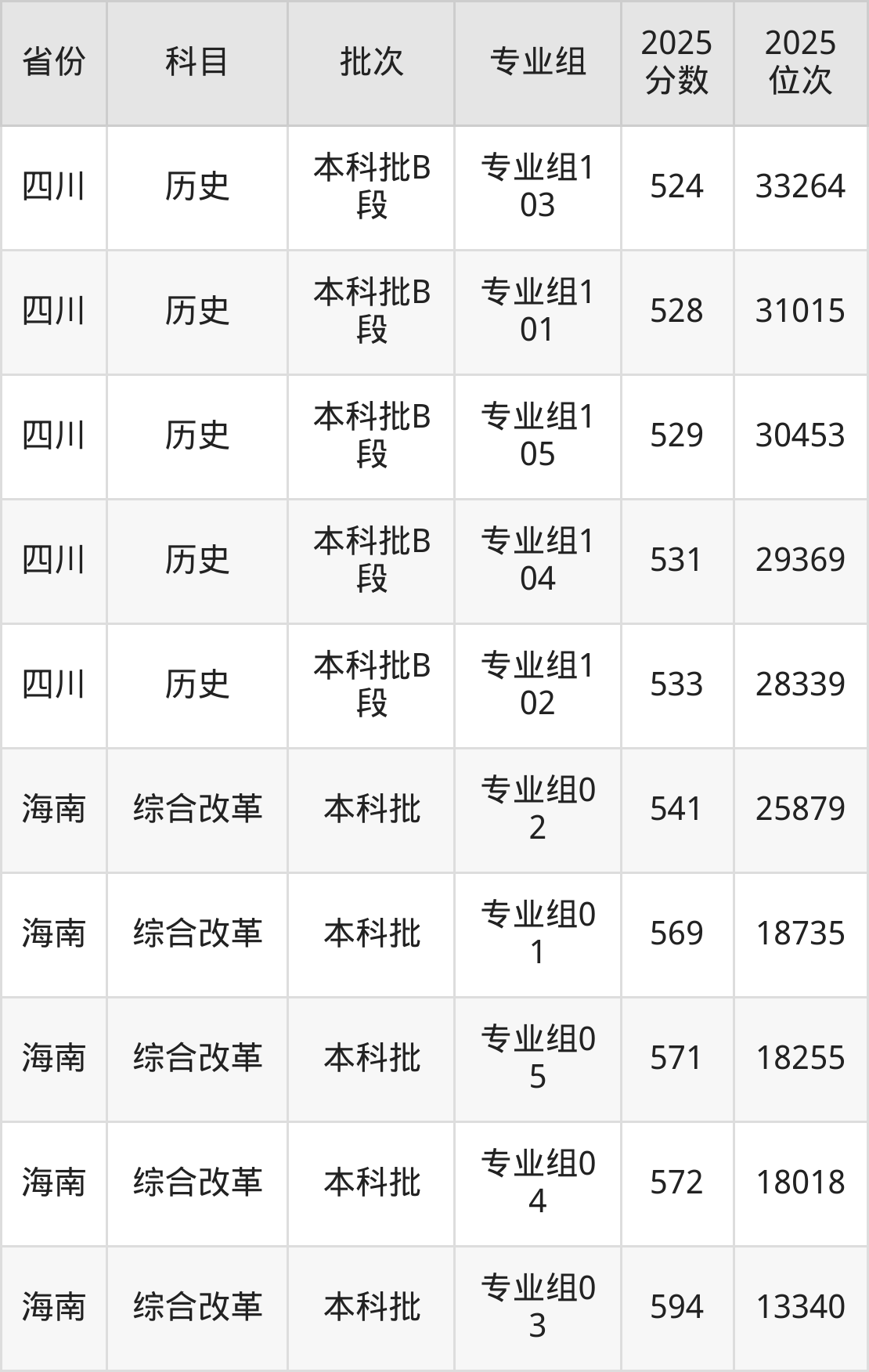 最高录取分数线是533分,对应位次是28339名,招生地区为四川。