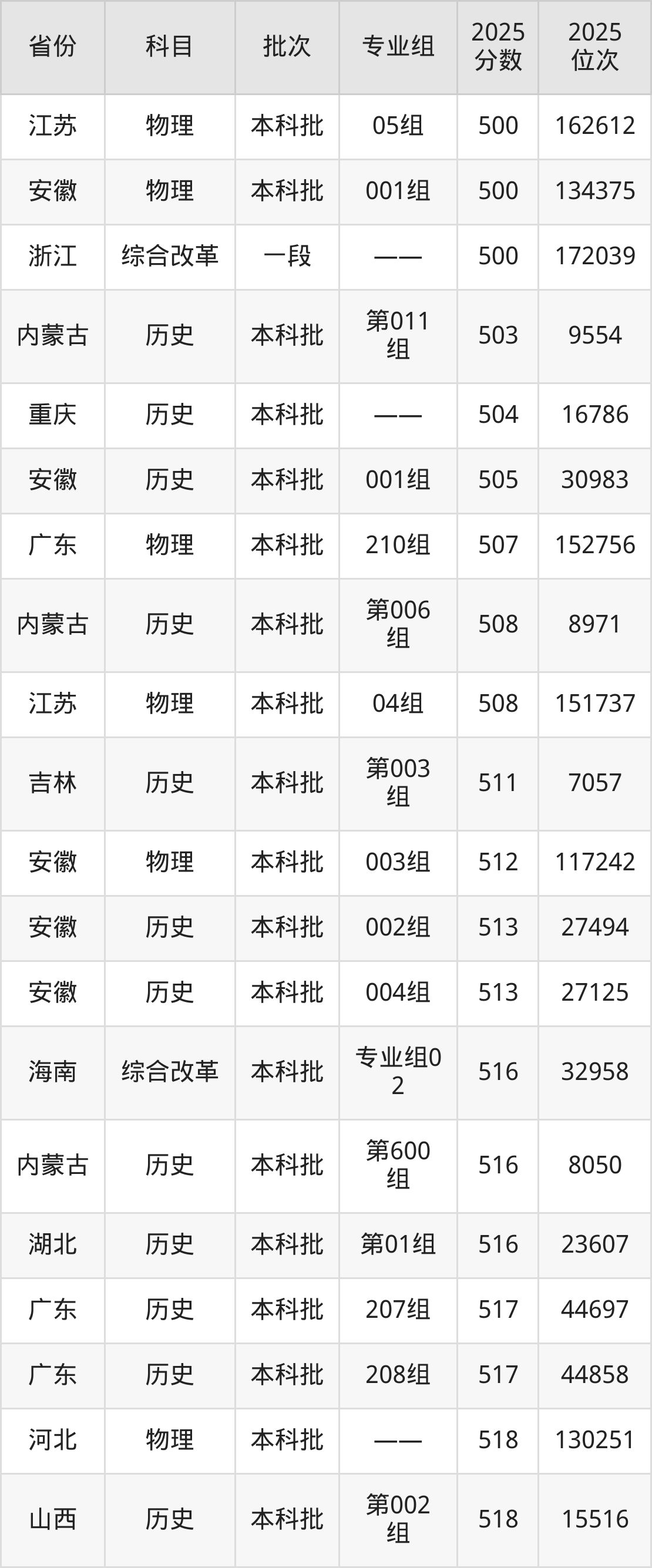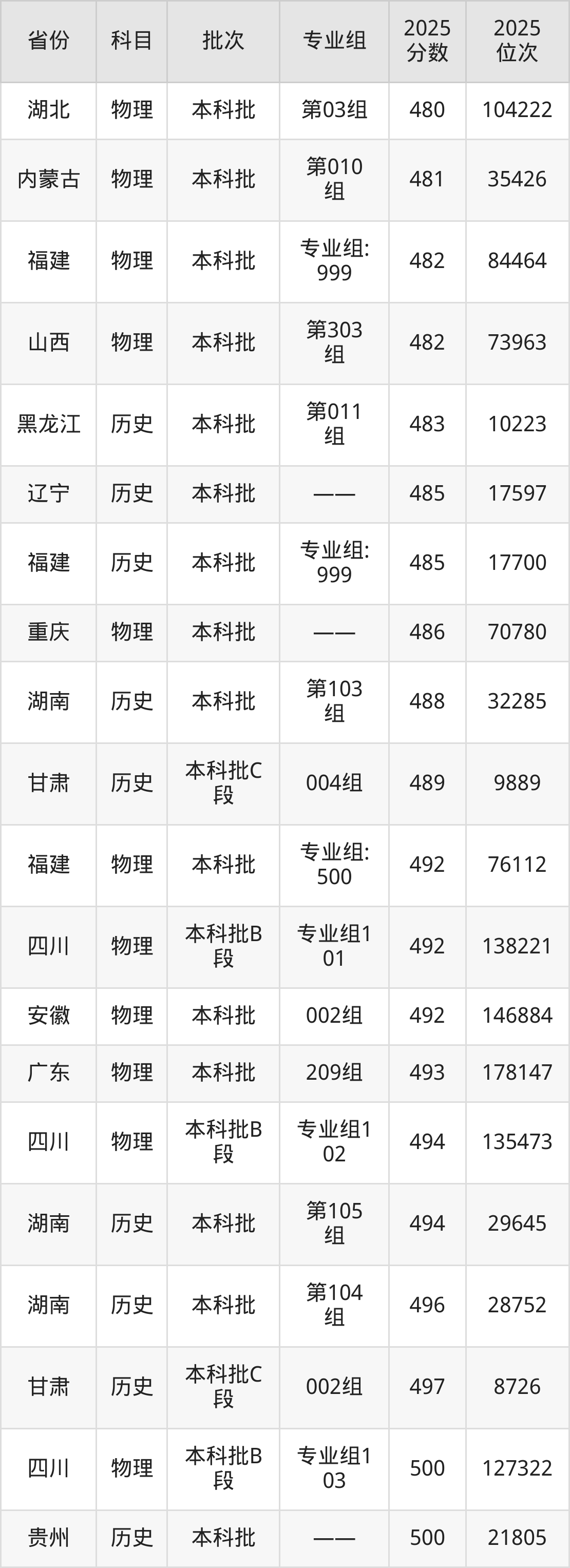 2025年哈尔滨学院在各省普通批录取分数线一览表: