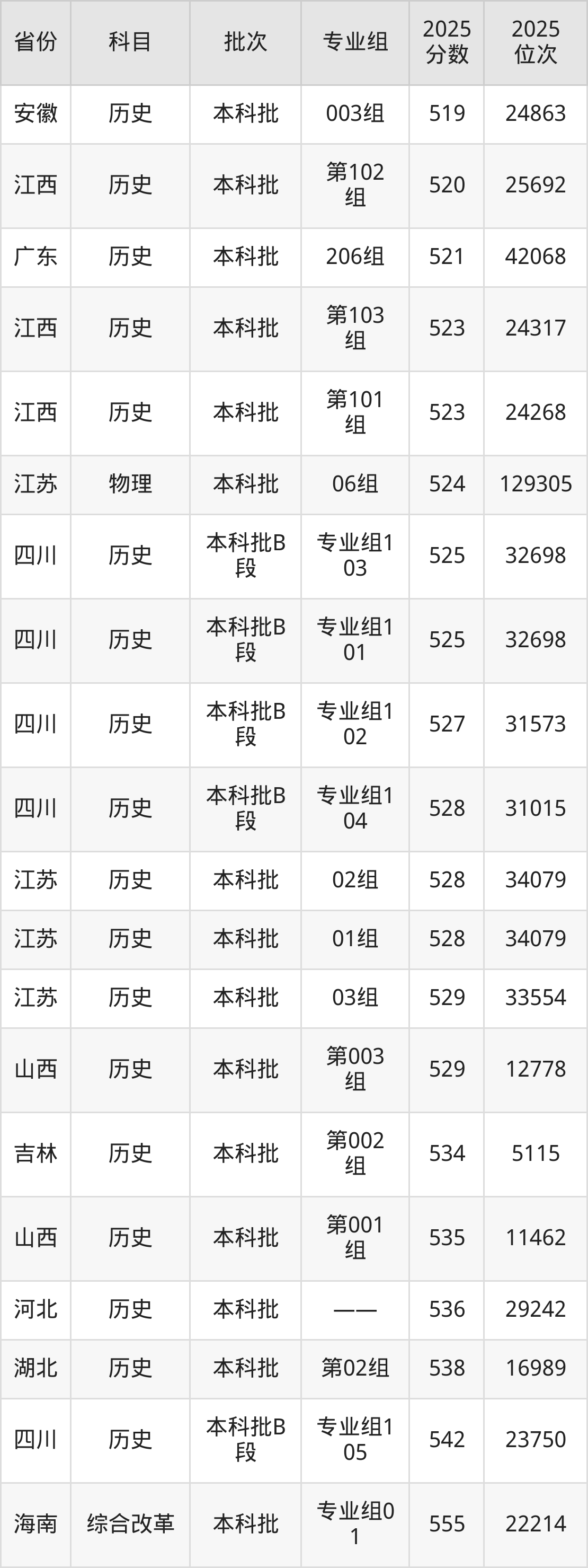最高录取分数线是542分,对应位次是23750名,招生地区为四川。