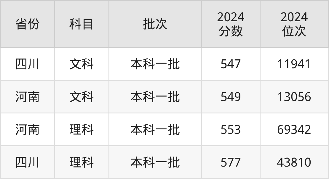 最低录取分数线是547分,对应位次是11941名,招生地区为四川;