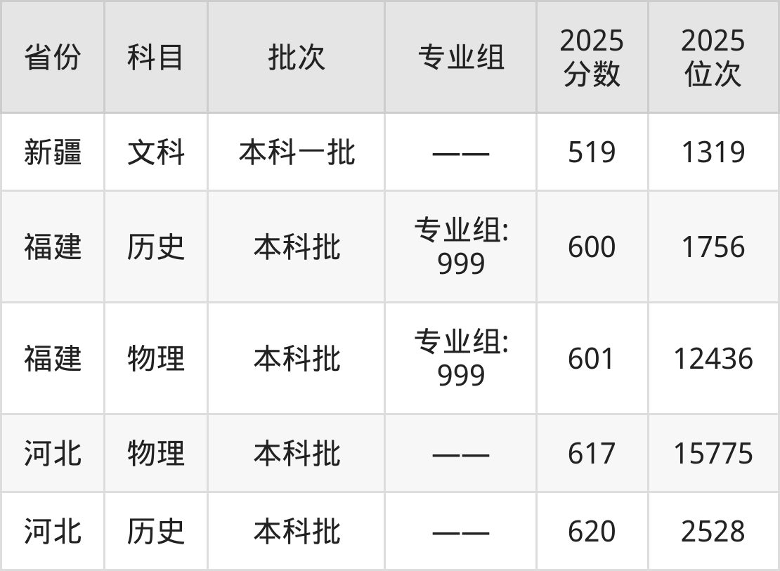 最低录取分数线是519分,对应位次是1319名,招生地区为新疆;