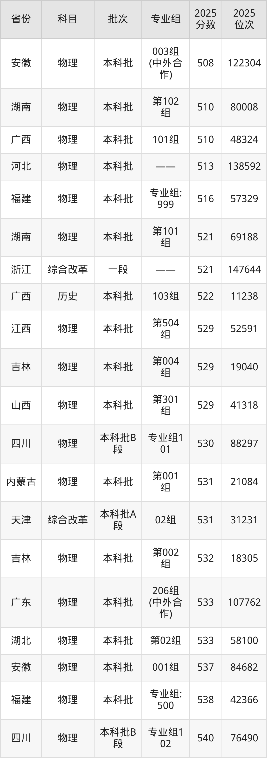 最低录取分数线是522分,对应位次是11238名,招生地区为广西;