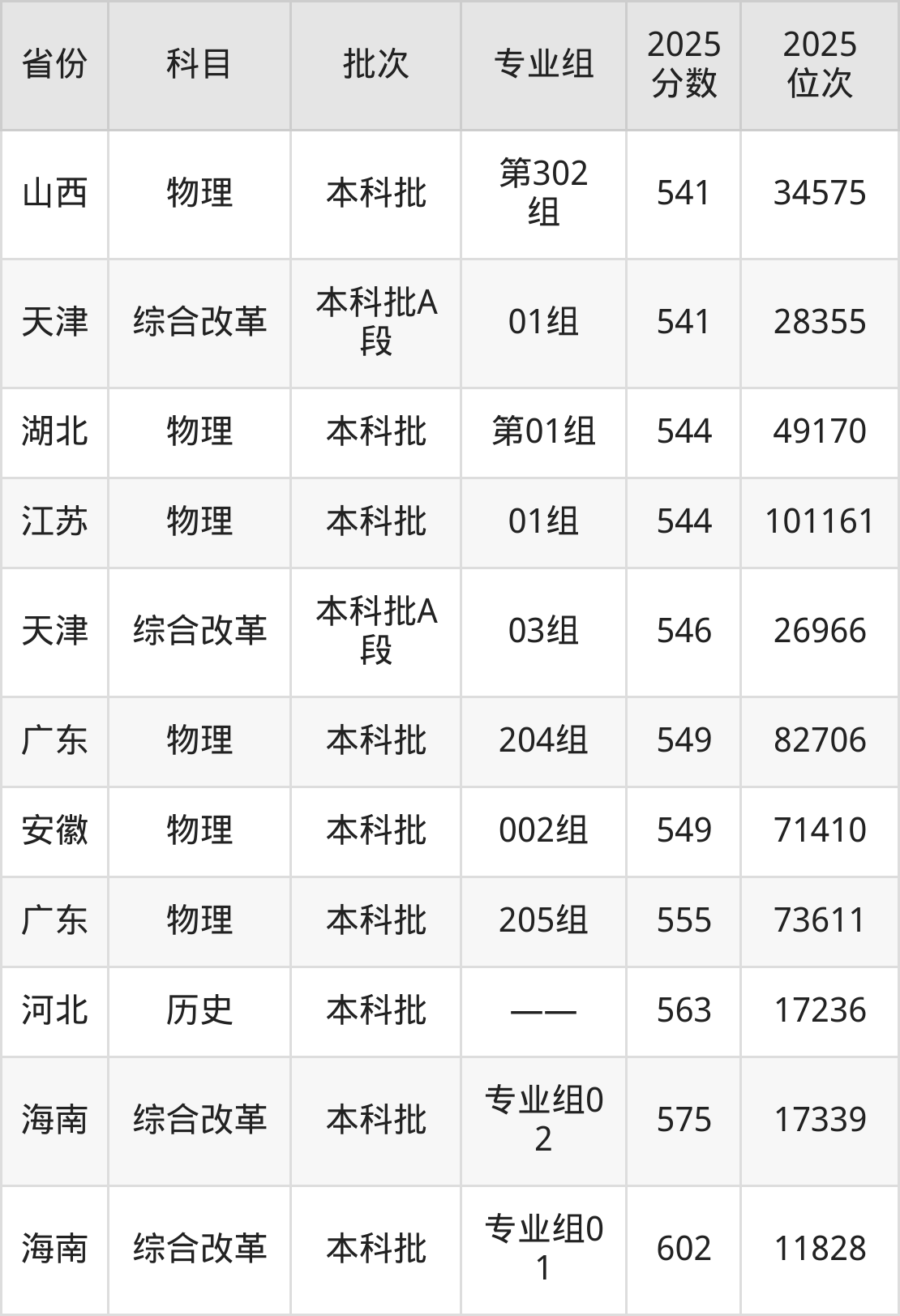 最高录取分数线是602分,对应位次是11828名,招生地区为海南。