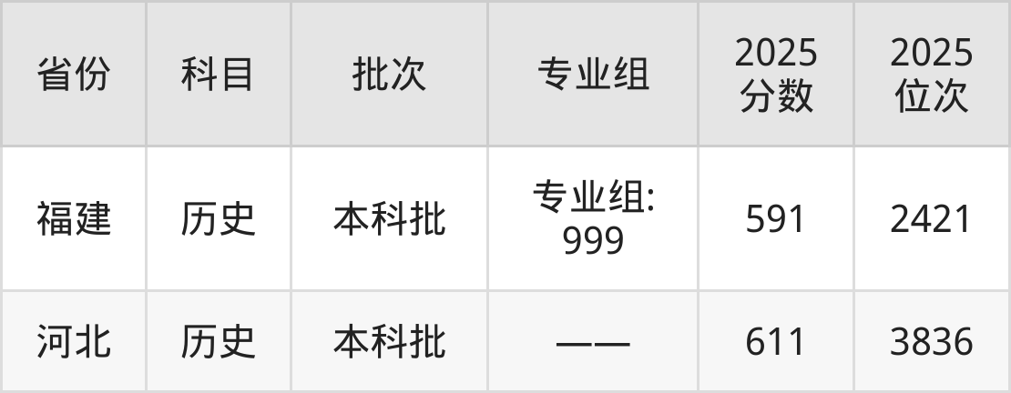 最低录取分数线是591分,对应位次是2421名,招生地区为福建;