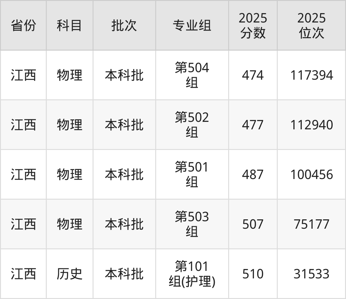 2025年南昌大学(抚州校区)在各省物理类的录取分数线位于474分-507分之间。