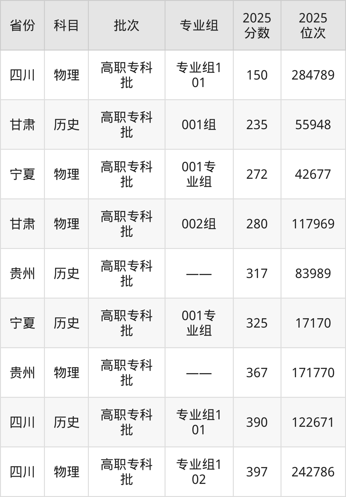 最低录取分数线是150分,对应位次是284789名,招生地区为四川;