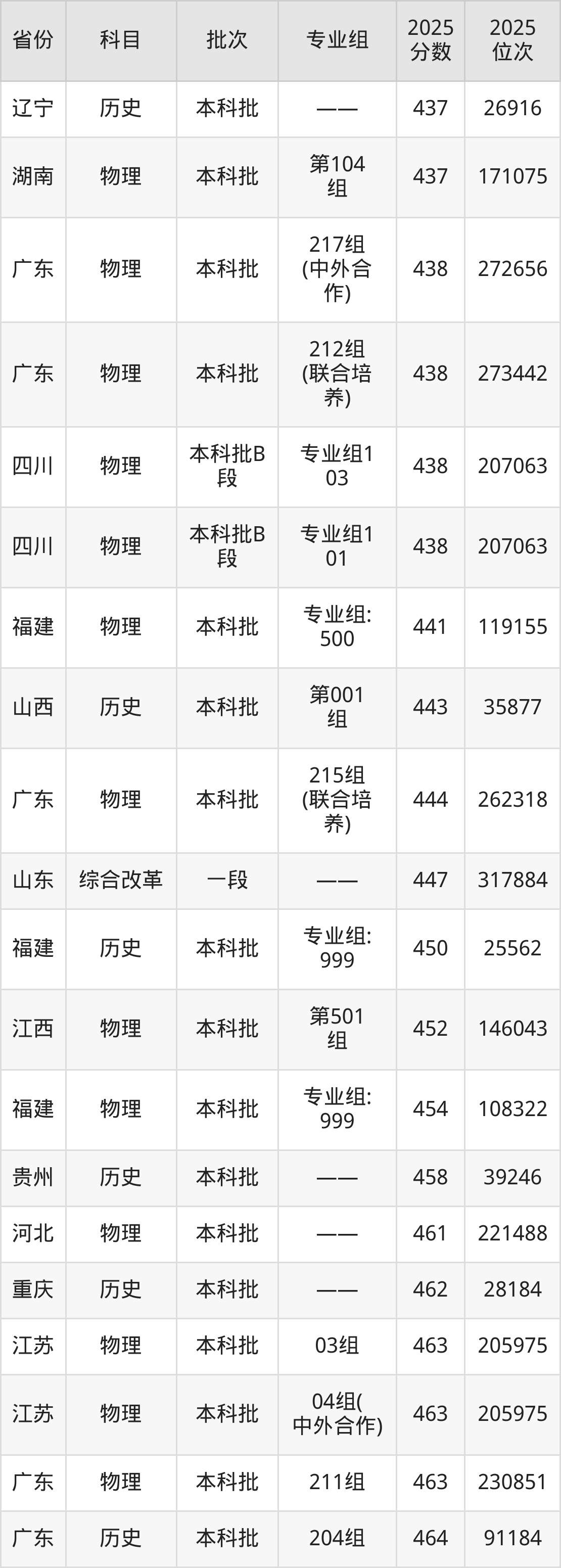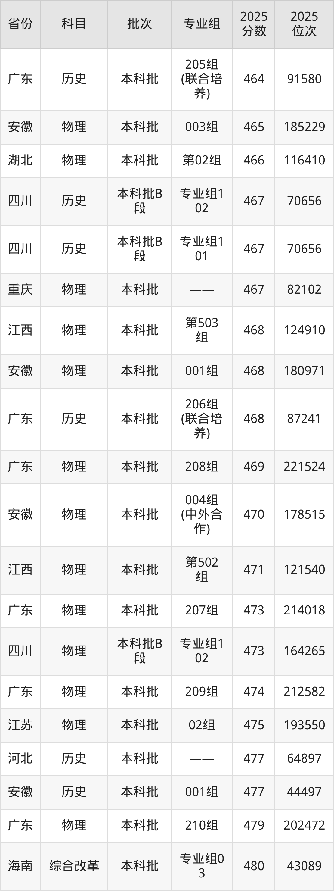 2025年广州南方学院在各省物理类的录取分数线位于353分-486分之间。