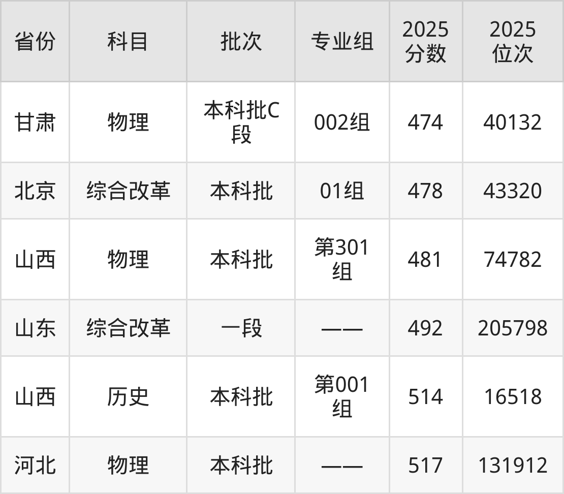 最低录取分数线是514分,对应位次是16518名,招生地区为山西。