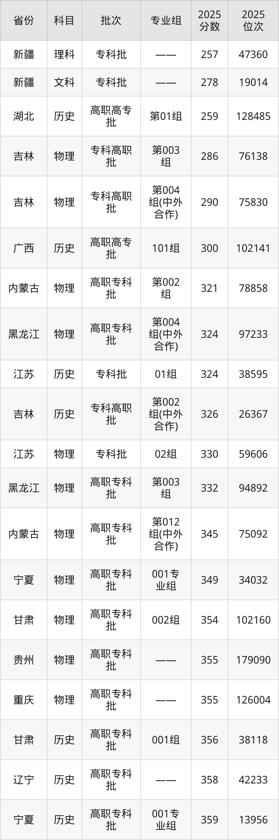 2025年长春金融高等专科学校在各省普通批录取分数线一览表: