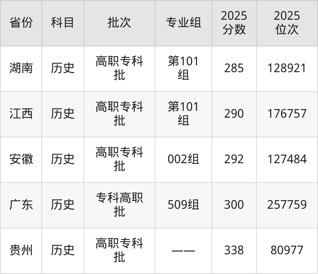 2025年广州东华职业学院在各省普通批录取分数线一览表: