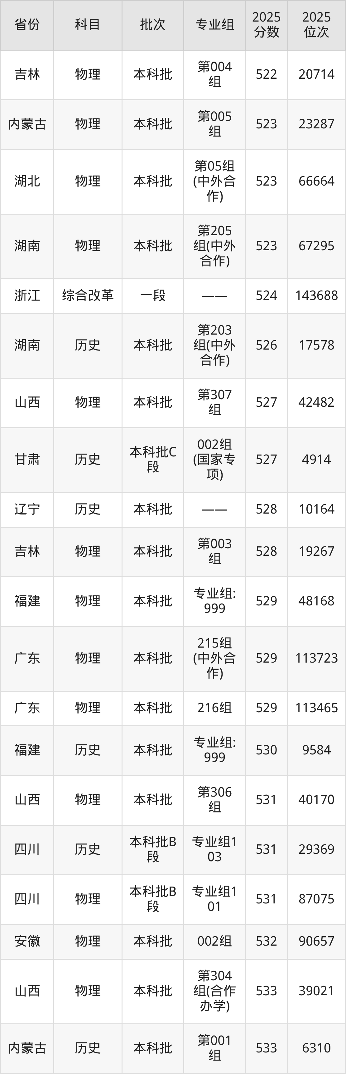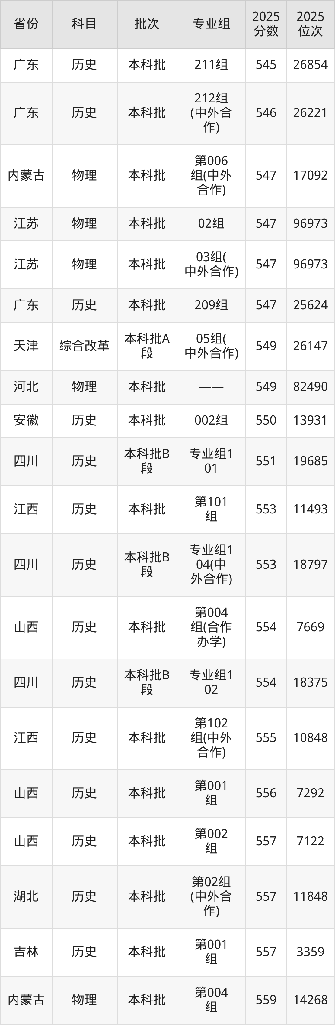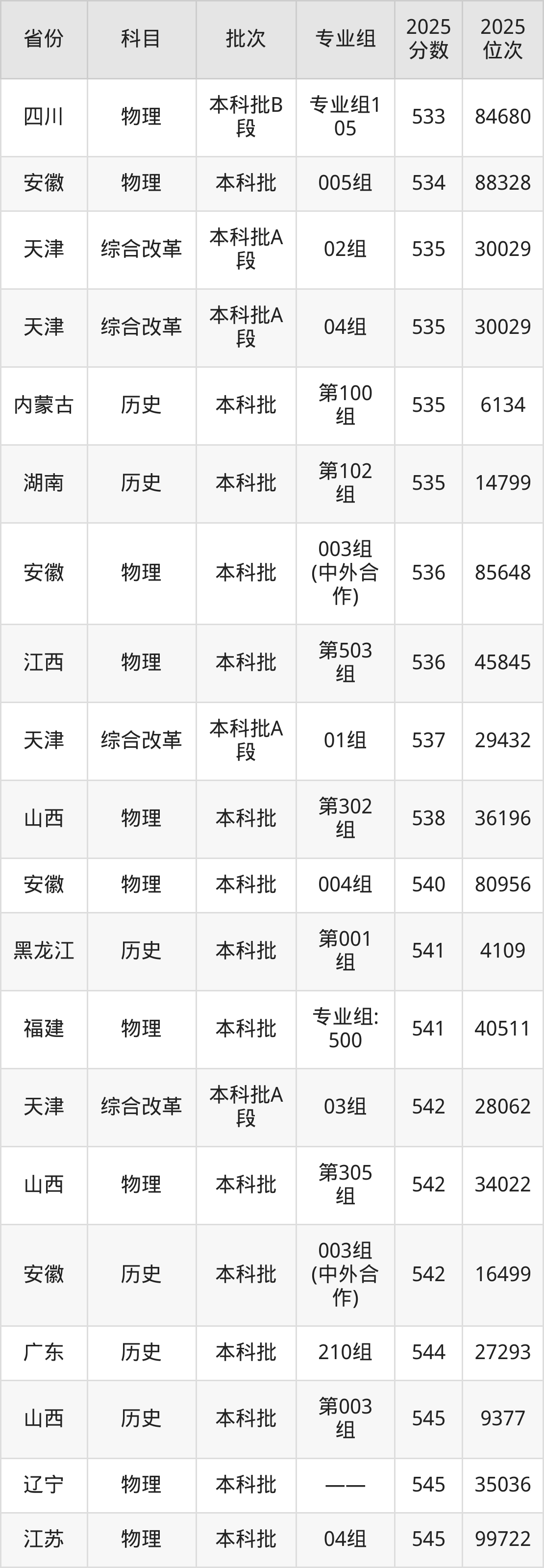 2025年天津商业大学在各省普通批录取分数线一览表: