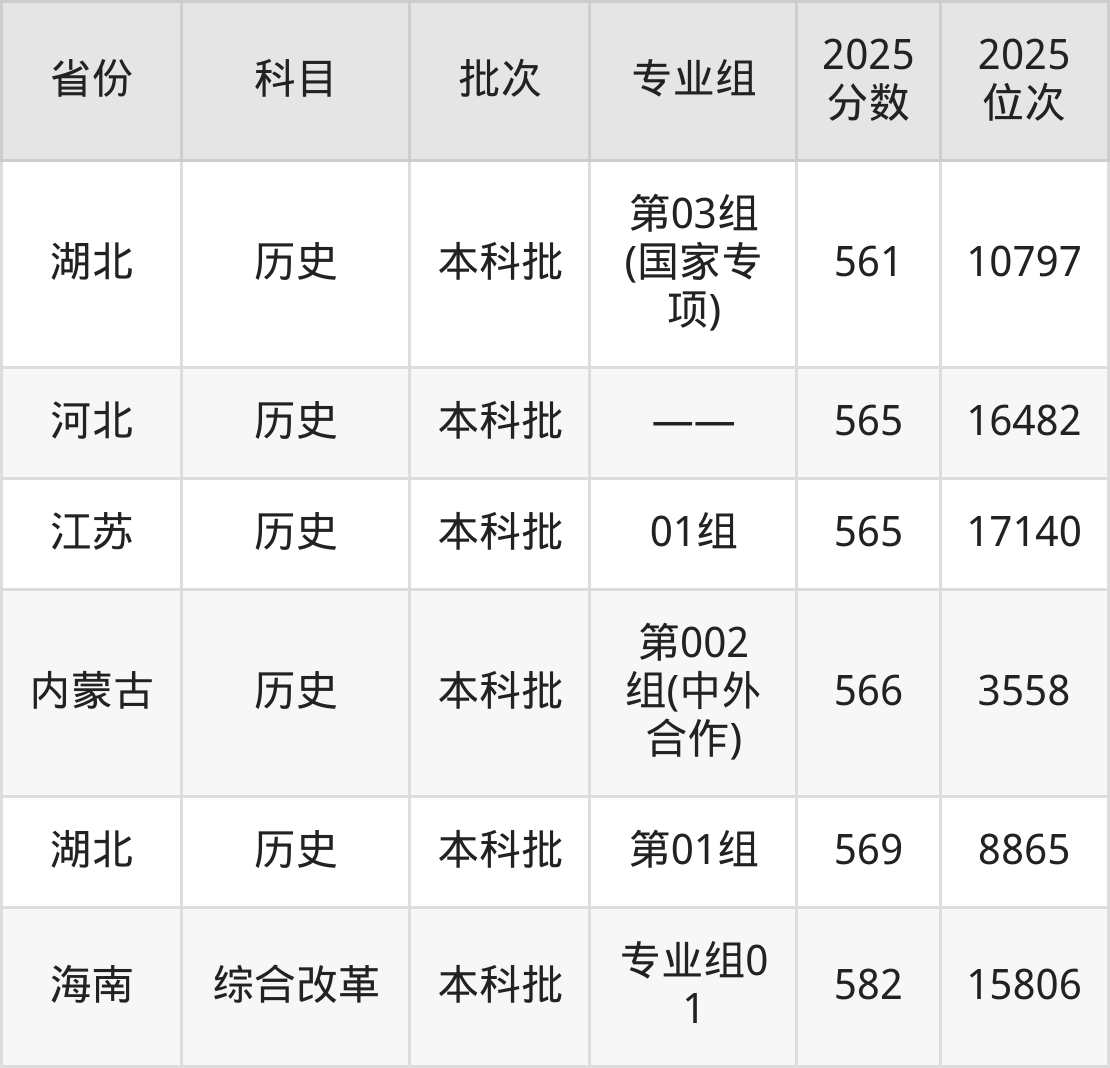 最高录取分数线是569分,对应位次是8865名,招生地区为湖北。