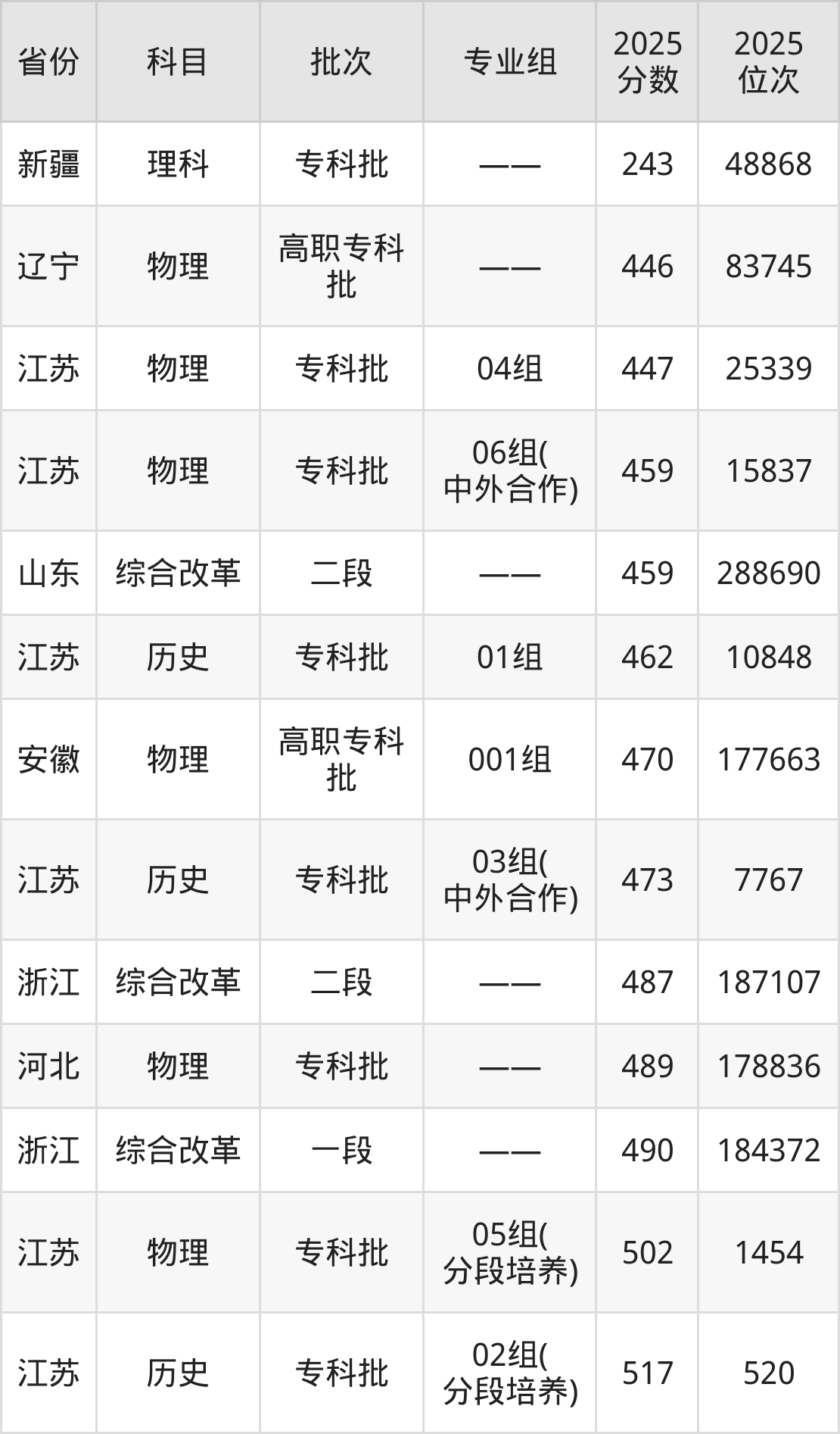 2025年常州信息职业技术学院在各省物理类和理科的录取分数线位于243分-502分之间。