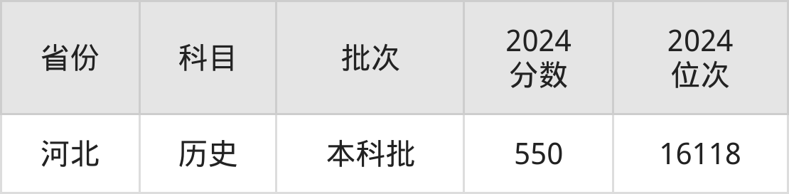 最低录取分数线是550分,对应位次是16118名,招生地区为河北。