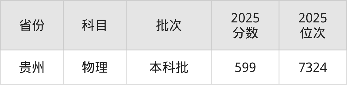 最低录取分数线是599分,对应位次是7324名,招生地区为贵州。