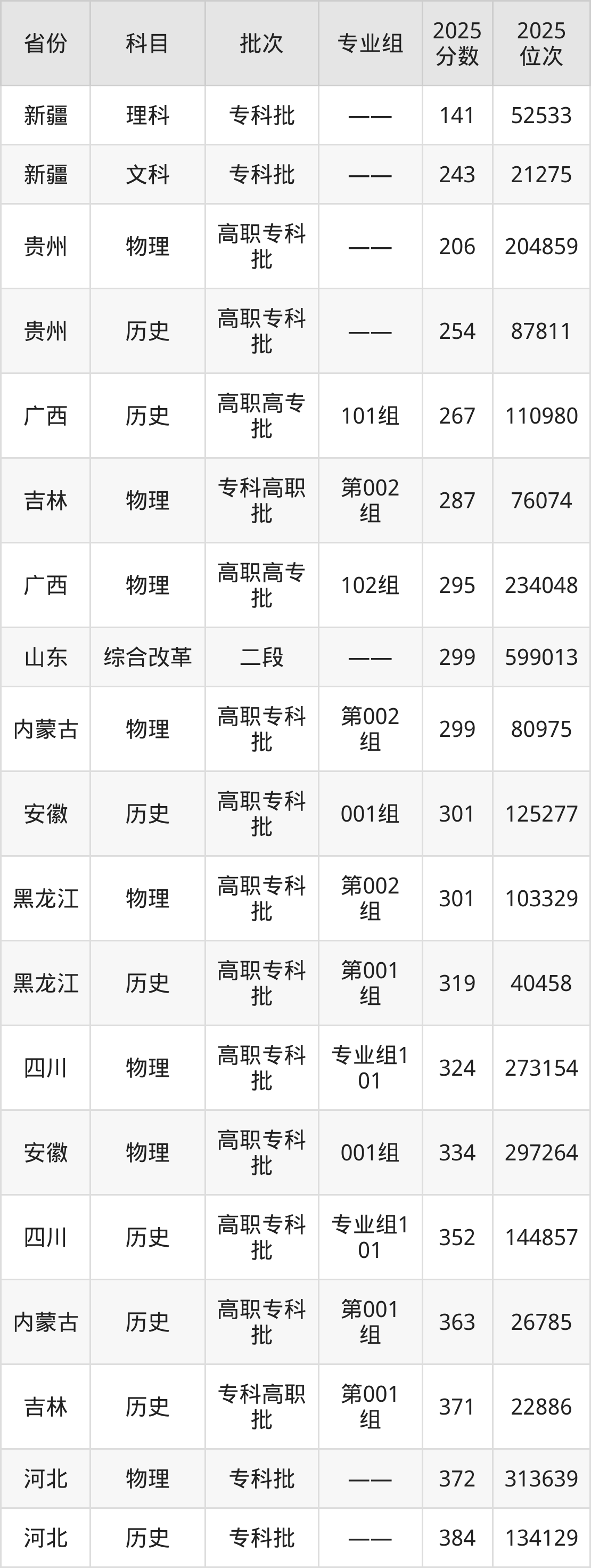 最低录取分数线是141分,对应位次是52533名,招生地区为新疆;