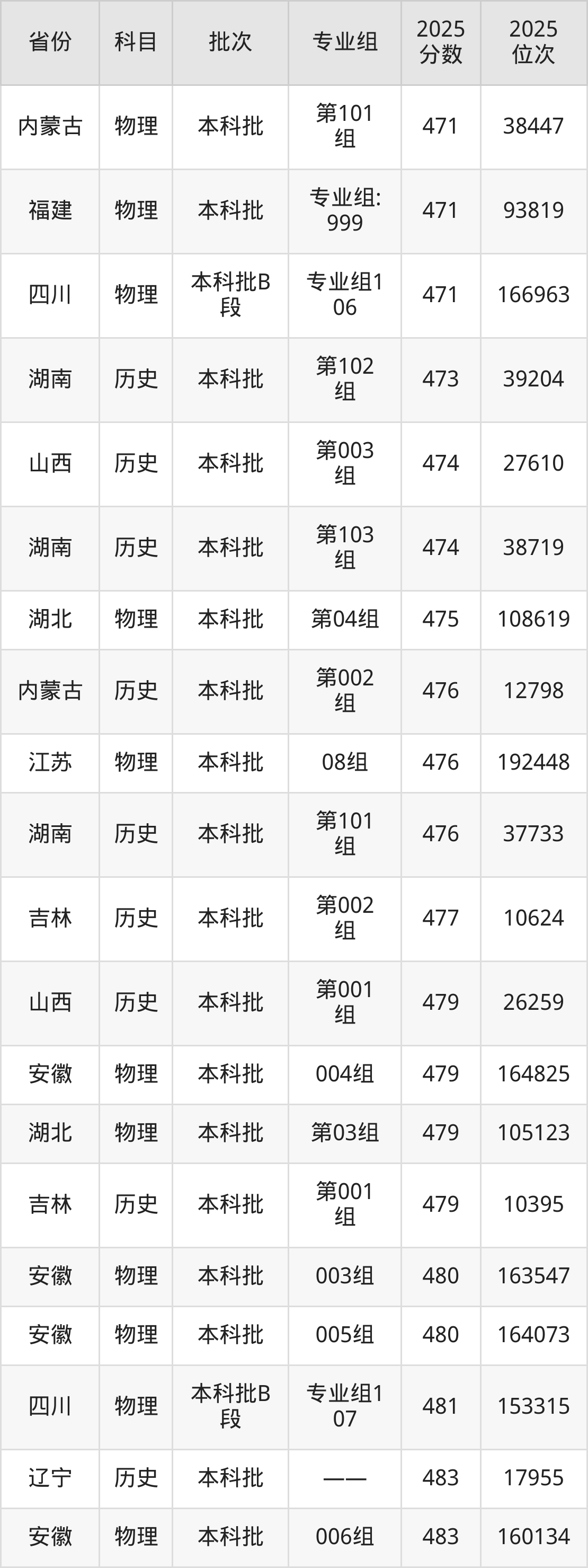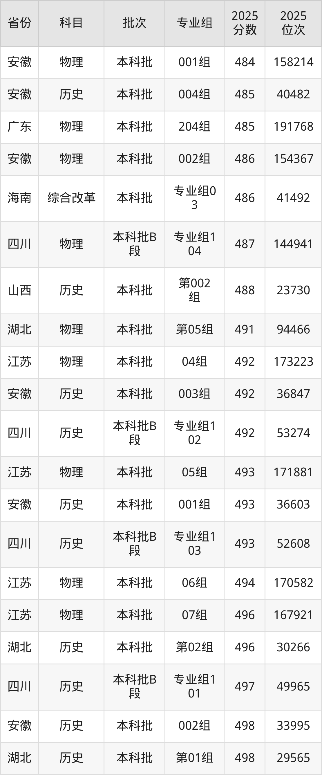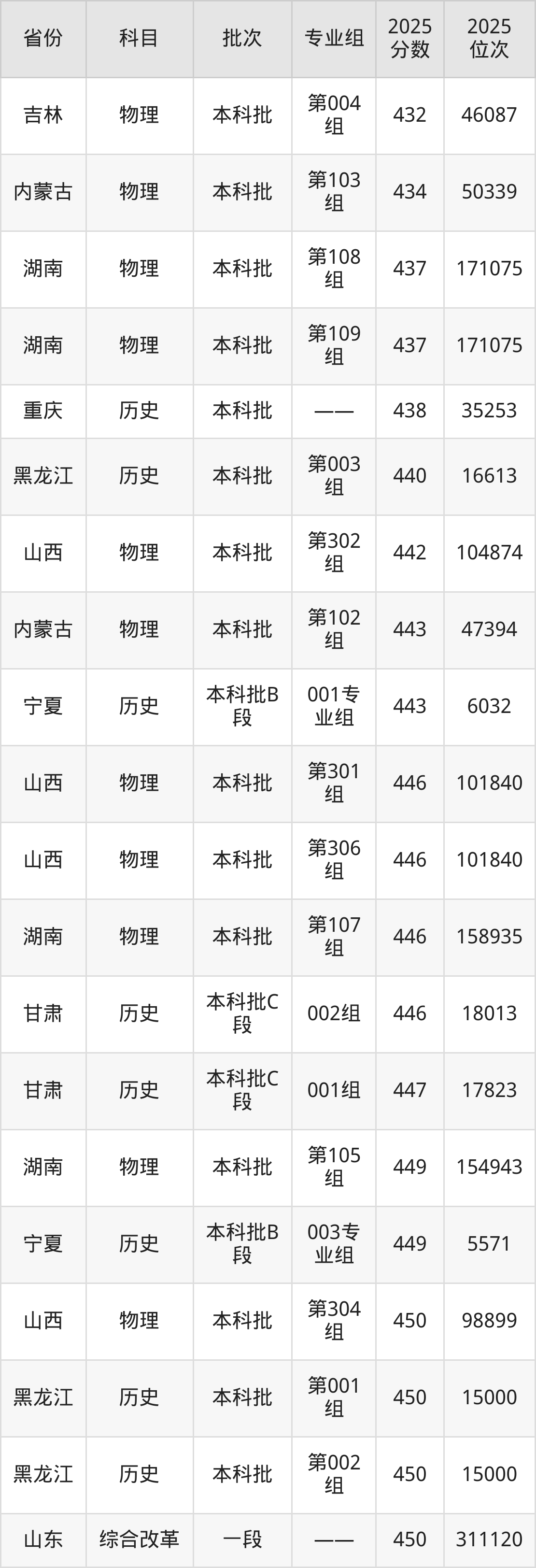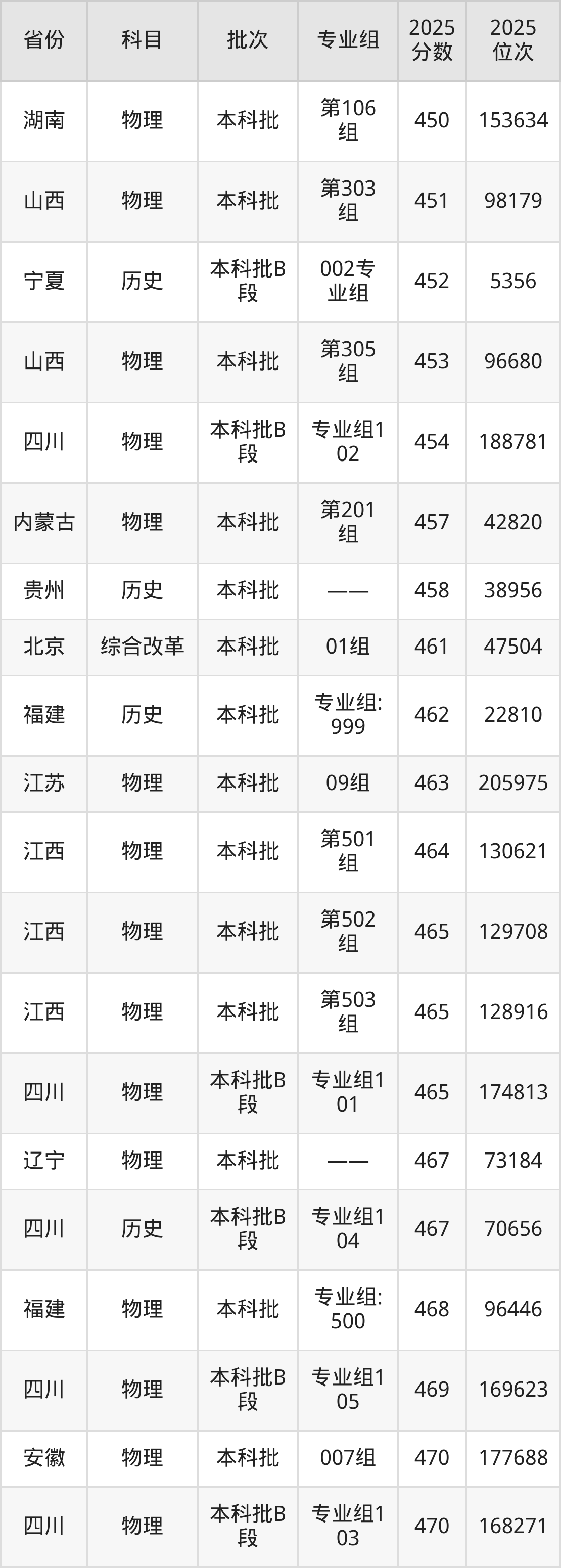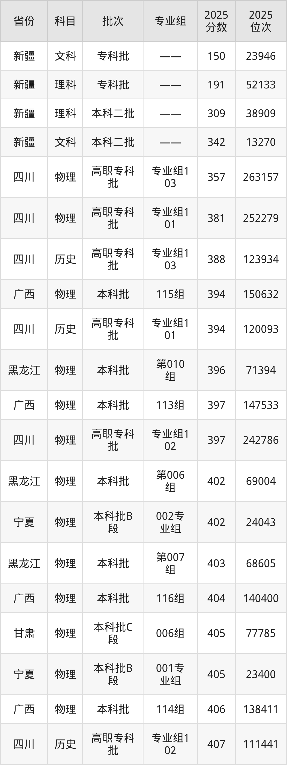 最低录取分数线是150分,对应位次是23946名,招生地区为新疆;