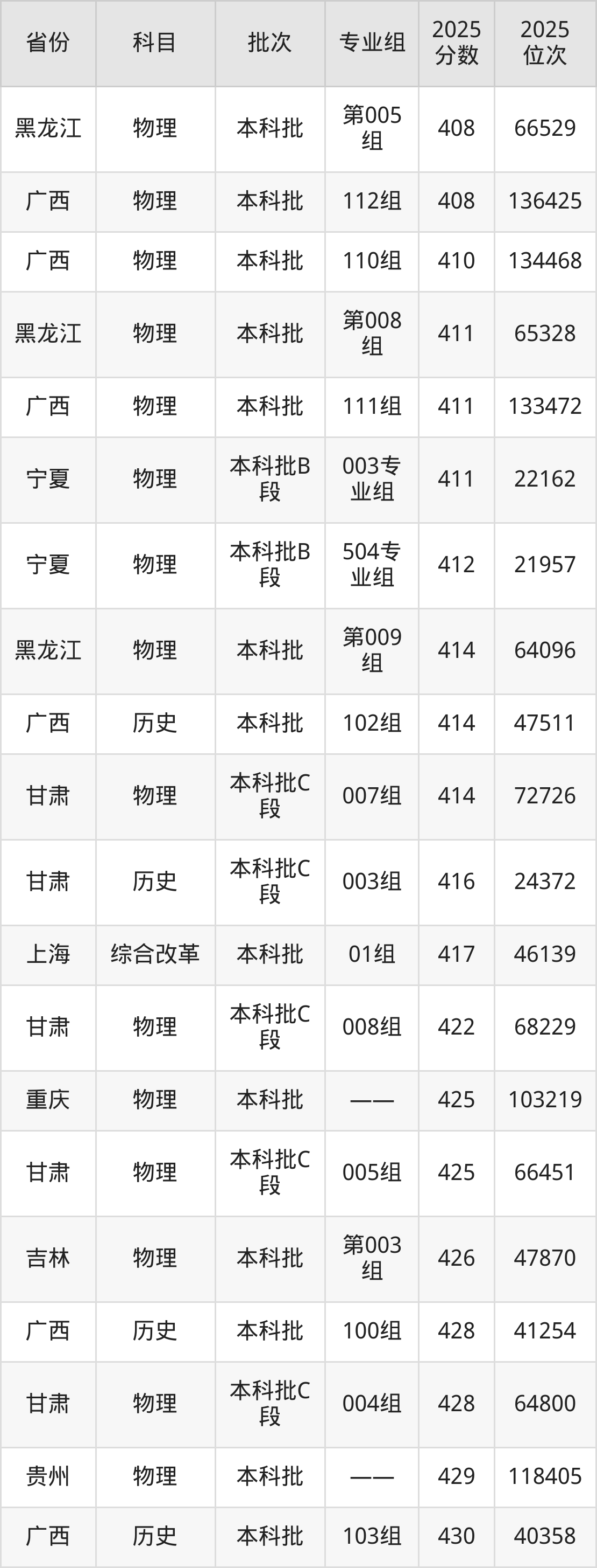 最低录取分数线是417分,对应位次是46139名,招生地区为上海;