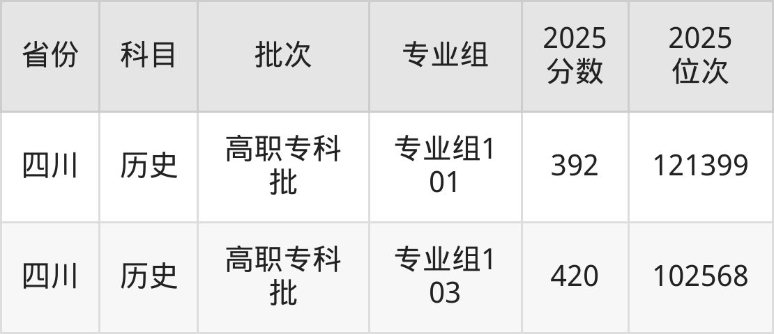 最高录取分数线是420分,对应位次是102568名,招生地区为四川。