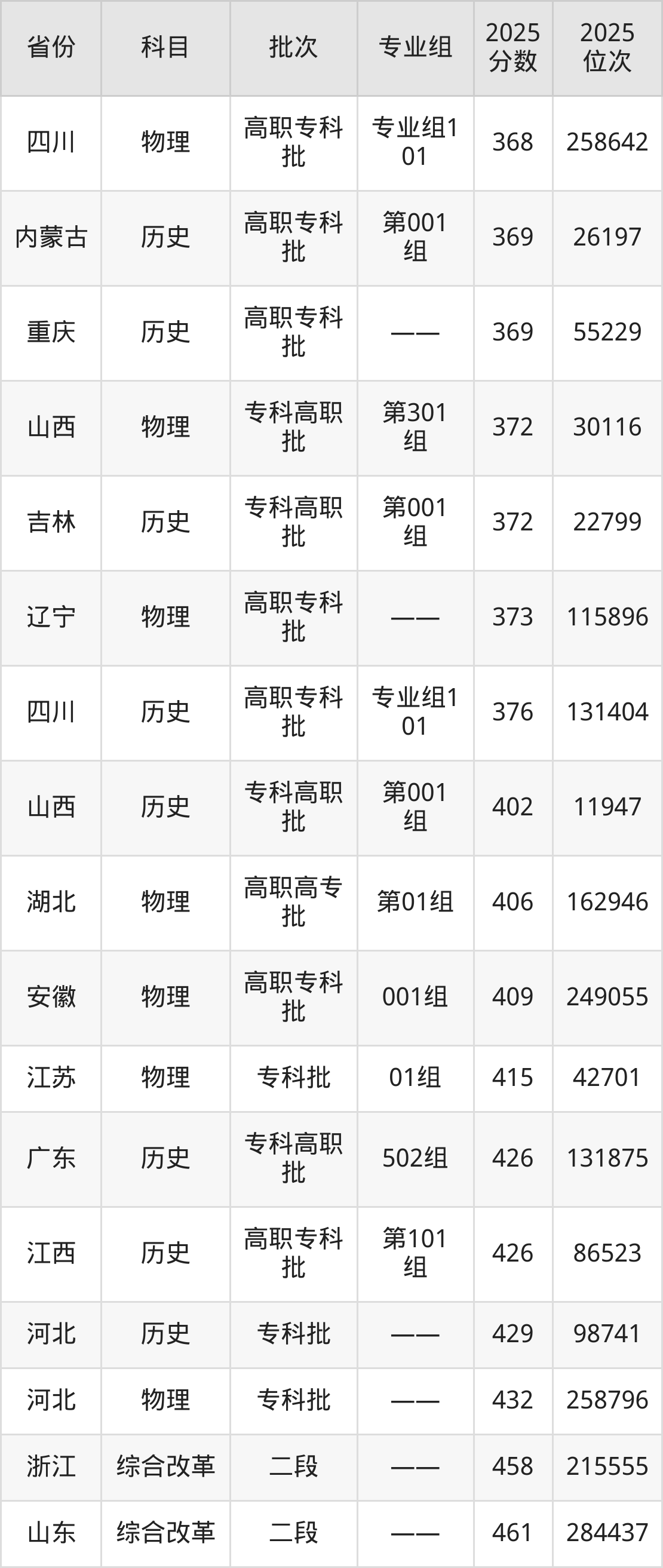 最低录取分数线是458分,对应位次是215555名,招生地区为浙江;