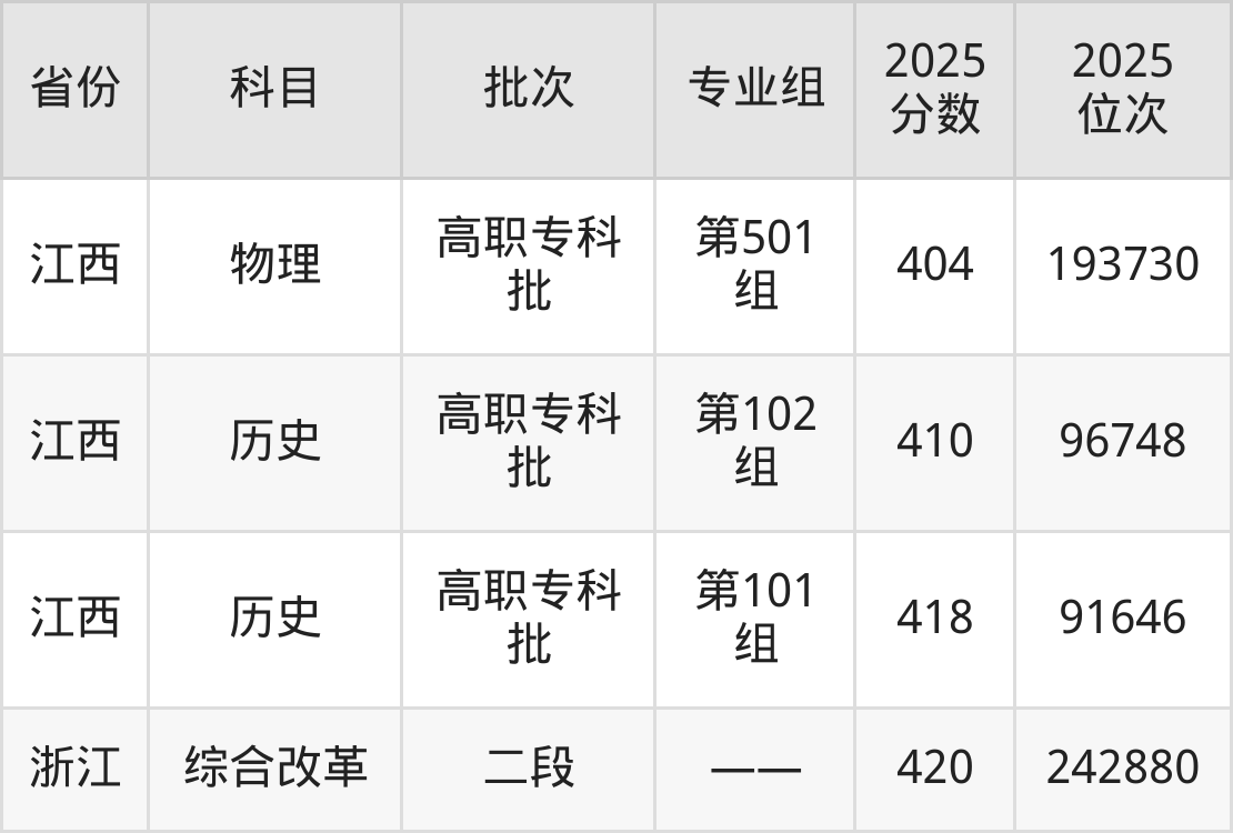 最高录取分数线是404分,对应位次是193730名,招生地区为江西。