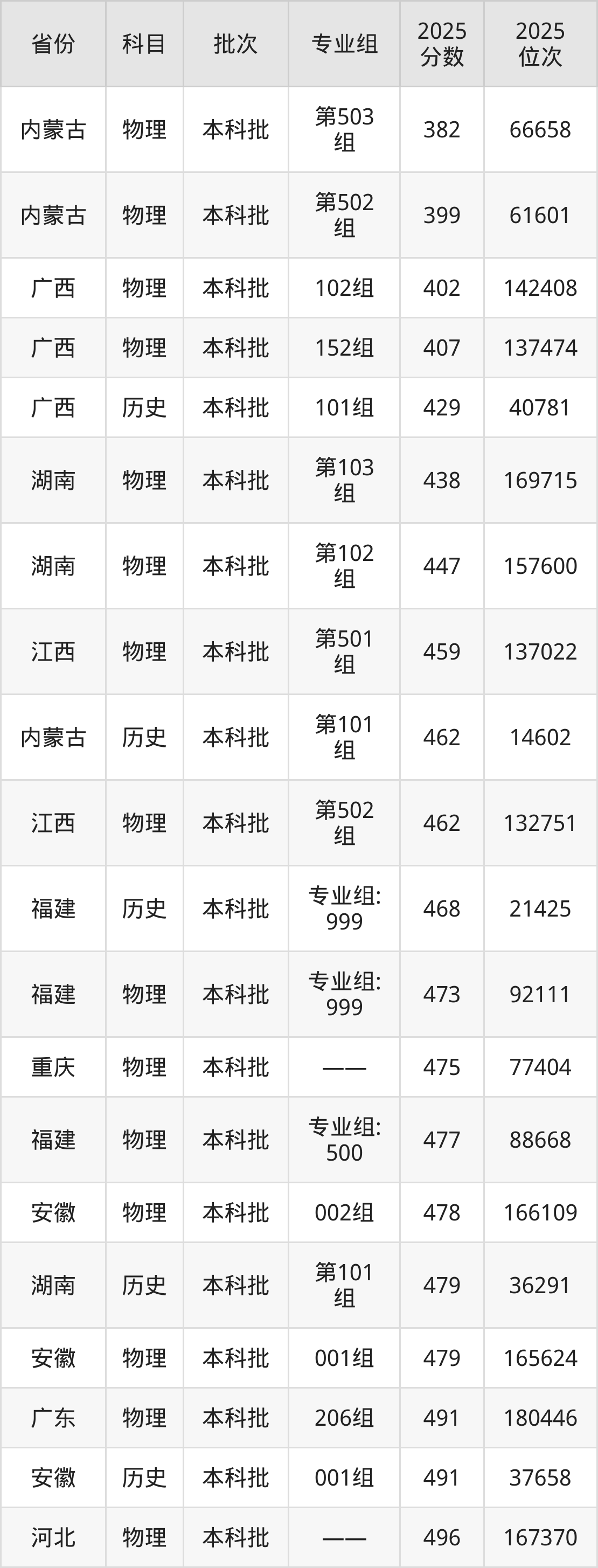 最低录取分数线是382分,对应位次是66658名,招生地区为内蒙古;